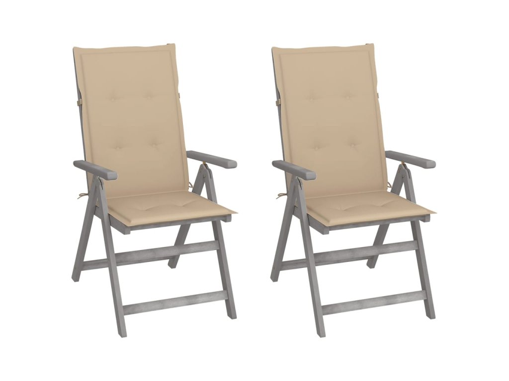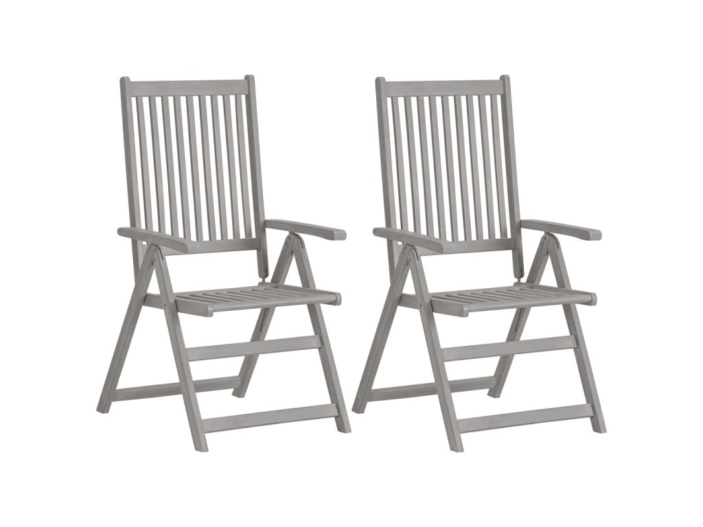 Křesla jsou vyrobená z masivního akáciového dřeva s šedou povrchovou úpravou. Akácie je tvrdé dřevo s hustou kresbou. Zahradní židle mají překrásný design, jsou stabilní, hodně toho vydrží a vypadají velice atraktivně. Opěradla židlí lze nastavit do 5 poloh, takže si vždy najdete tu nejpohodlnější, která vám zrovna vyhovuje. Podušky vám při odpočinku zajistí mimořádné pohodlí. Jsou vyrobené ze 100% polyesteru s voděodolnou povrchovou úpravou a každá z nich je opatřená elastickou gumičkou a 2 páry šňůrek, za které ji můžete pevně přivázat k židli.