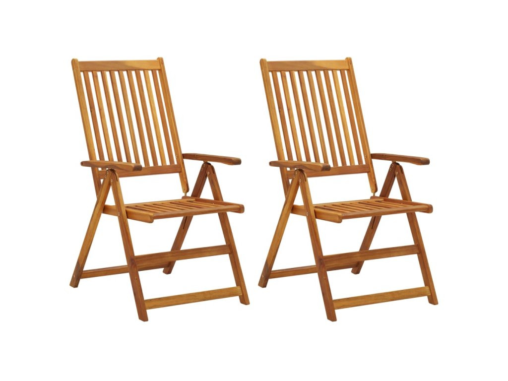 Zahradní židle jsou vyrobené z masivní akácie napuštěné olejem. Jedná se o tvrdé dřevo s hustou kresbou, které dokáže unést značnou váhu, výborně odolává působení času a neopotřebovává se. Vzhledem k olejem ošetřenému povrchu lze židle snadno očistit navlhčeným hadříkem. Jejich opěradla je navíc možné nastavit do 5 různých poloh, abyste si mohli vždycky najít tu, která je pro vás nejpohodlnější. Součástí balení jsou také podušky pro pohodlnější stolování či odpočinek. Každá poduška je opatřená elastickým popruhem a dvěma páry šňůrek, za které ji spolehlivě připevníte k židli.