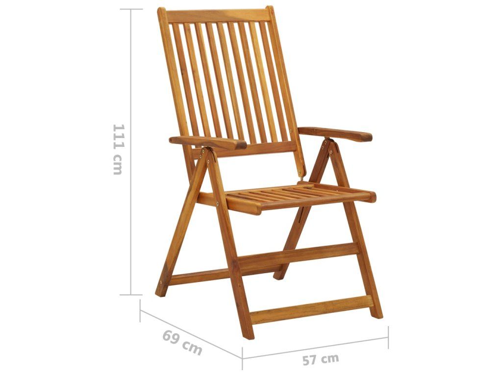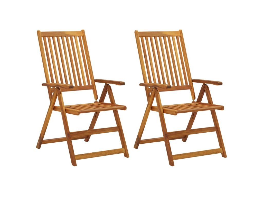 Zahradní židle jsou vyrobené z masivní akácie napuštěné olejem. Jedná se o tvrdé dřevo s hustou kresbou, které dokáže unést značnou váhu, výborně odolává působení času a neopotřebovává se. Vzhledem k olejem ošetřenému povrchu lze židle snadno očistit navlhčeným hadříkem. Jejich opěradla je navíc možné nastavit do 5 různých poloh, abyste si mohli vždycky najít tu, která je pro vás nejpohodlnější. Součástí balení jsou také podušky pro pohodlnější stolování či odpočinek. Každá poduška je opatřená elastickým popruhem a dvěma páry šňůrek, za které ji spolehlivě připevníte k židli.