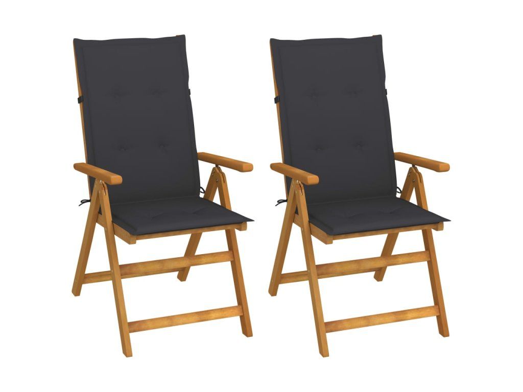 Zahradní židle jsou vyrobené z masivní akácie napuštěné olejem. Jedná se o tvrdé dřevo s hustou kresbou, které dokáže unést značnou váhu, výborně odolává působení času a neopotřebovává se. Vzhledem k olejem ošetřenému povrchu lze židle snadno očistit navlhčeným hadříkem. Jejich opěradla je navíc možné nastavit do 5 různých poloh, abyste si mohli vždycky najít tu, která je pro vás nejpohodlnější. Součástí balení jsou také podušky pro pohodlnější stolování či odpočinek. Každá poduška je opatřená elastickým popruhem a dvěma páry šňůrek, za které ji spolehlivě připevníte k židli.
