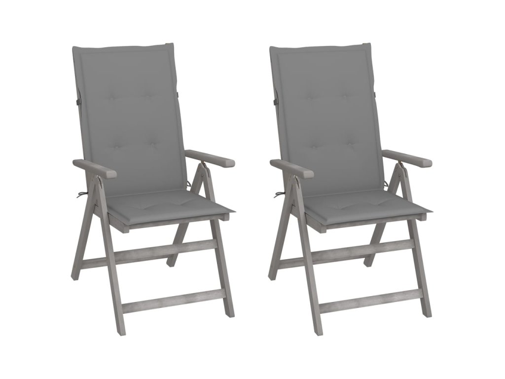 Křesla jsou vyrobená z masivního akáciového dřeva s šedou povrchovou úpravou. Akácie je tvrdé dřevo s hustou kresbou. Zahradní židle mají překrásný design, jsou stabilní, hodně toho vydrží a vypadají velice atraktivně. Opěradla židlí lze nastavit do 5 poloh, takže si vždy najdete tu nejpohodlnější, která vám zrovna vyhovuje. Podušky vám při odpočinku zajistí mimořádné pohodlí. Jsou vyrobené ze 100% polyesteru s voděodolnou povrchovou úpravou a každá z nich je opatřená elastickou gumičkou a 2 páry šňůrek, za které ji můžete pevně přivázat k židli.