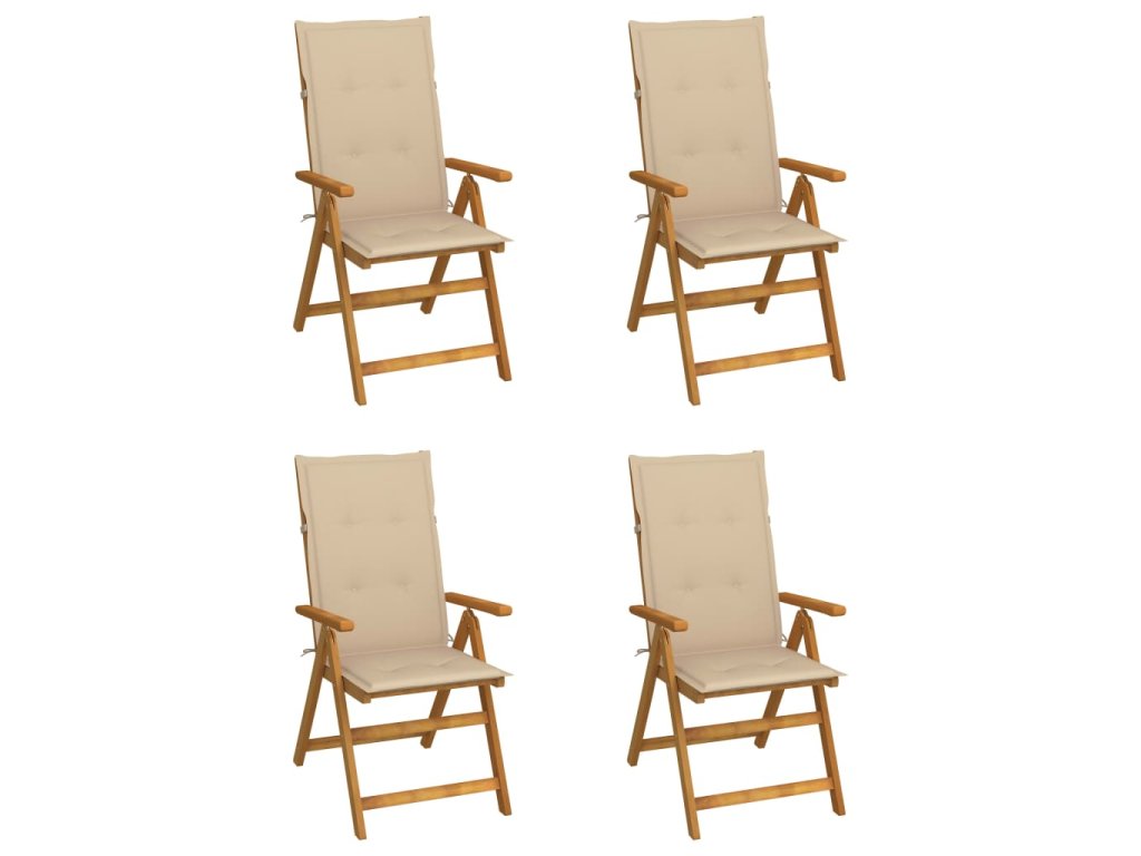 Zahradní židle jsou vyrobené z masivní akácie napuštěné olejem. Jedná se o tvrdé dřevo s hustou kresbou, které dokáže unést značnou váhu, výborně odolává působení času a neopotřebovává se. Vzhledem k olejem ošetřenému povrchu lze židle snadno očistit navlhčeným hadříkem. Jejich opěradla je navíc možné nastavit do 5 různých poloh, abyste si mohli vždycky najít tu, která je pro vás nejpohodlnější. Součástí balení jsou také podušky pro pohodlnější stolování či odpočinek. Každá poduška je opatřená elastickým popruhem a dvěma páry šňůrek, za které ji spolehlivě připevníte k židli.