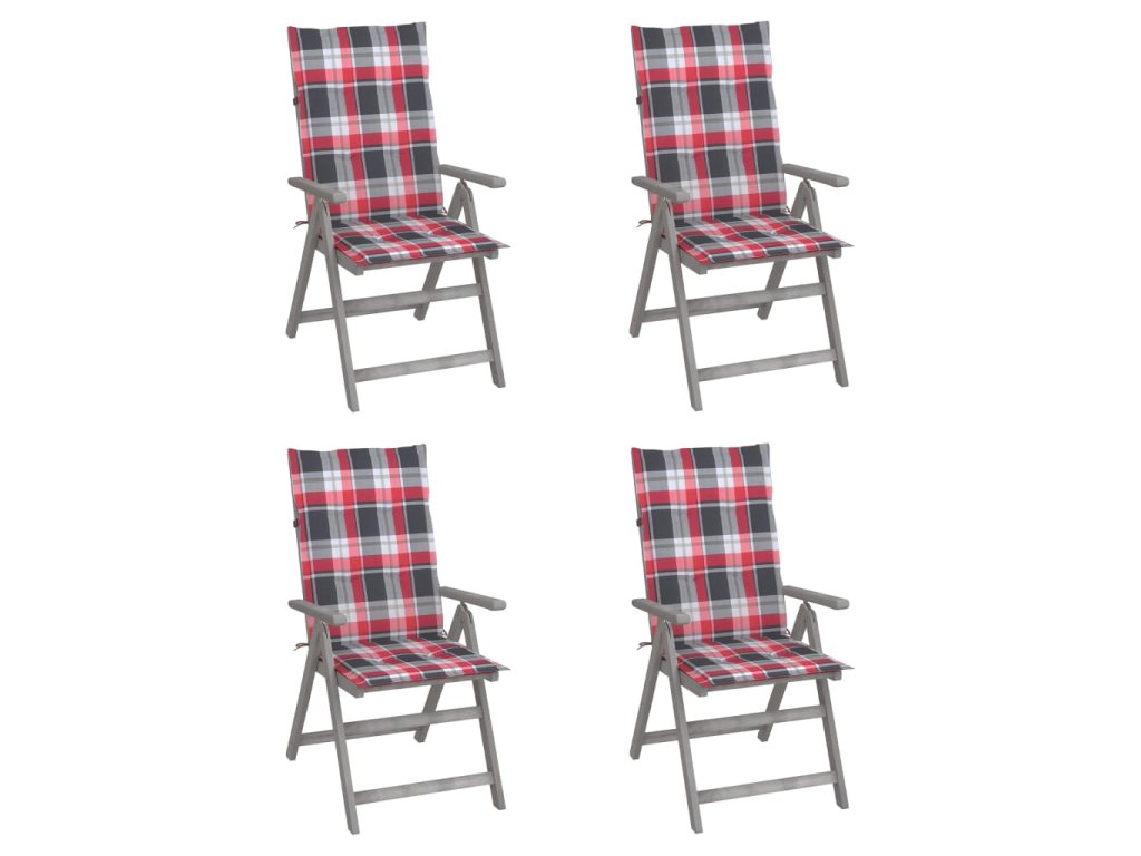 Křesla jsou vyrobená z masivního akáciového dřeva s šedou povrchovou úpravou. Akácie je tvrdé dřevo s hustou kresbou. Zahradní židle mají překrásný design, jsou stabilní, hodně toho vydrží a vypadají velice atraktivně. Opěradla židlí lze nastavit do 5 poloh, takže si vždy najdete tu nejpohodlnější, která vám zrovna vyhovuje. Podušky nabízí mimořádné pohodlí, ať už odpočíváte, nebo večeříte. Každá poduška je opatřená elastickou gumičkou a 2 páry šňůrek, za které ji lze pevně přivázat k židli. Tyto židle jsou ideální pro stolování s rodinou nebo pro relaxaci na čerstvém vzduchu.