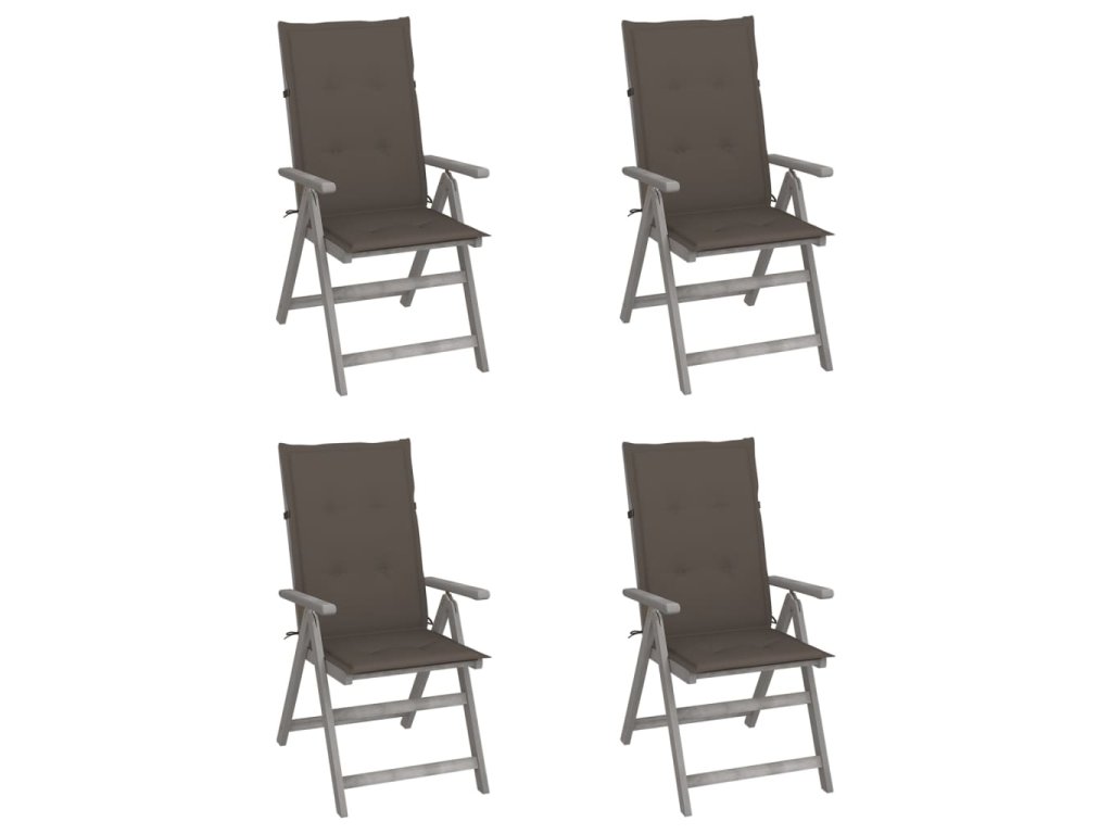 Křesla jsou vyrobená z masivního akáciového dřeva s šedou povrchovou úpravou. Akácie je tvrdé dřevo s hustou kresbou. Zahradní židle mají překrásný design, jsou stabilní, hodně toho vydrží a vypadají velice atraktivně. Opěradla židlí lze nastavit do 5 poloh, takže si vždy najdete tu nejpohodlnější, která vám zrovna vyhovuje. Podušky nabízí mimořádné pohodlí, ať už odpočíváte, nebo večeříte. Každá poduška je opatřená elastickou gumičkou a 2 páry šňůrek, za které ji lze pevně přivázat k židli. Tyto židle jsou ideální pro stolování s rodinou nebo pro relaxaci na čerstvém vzduchu.