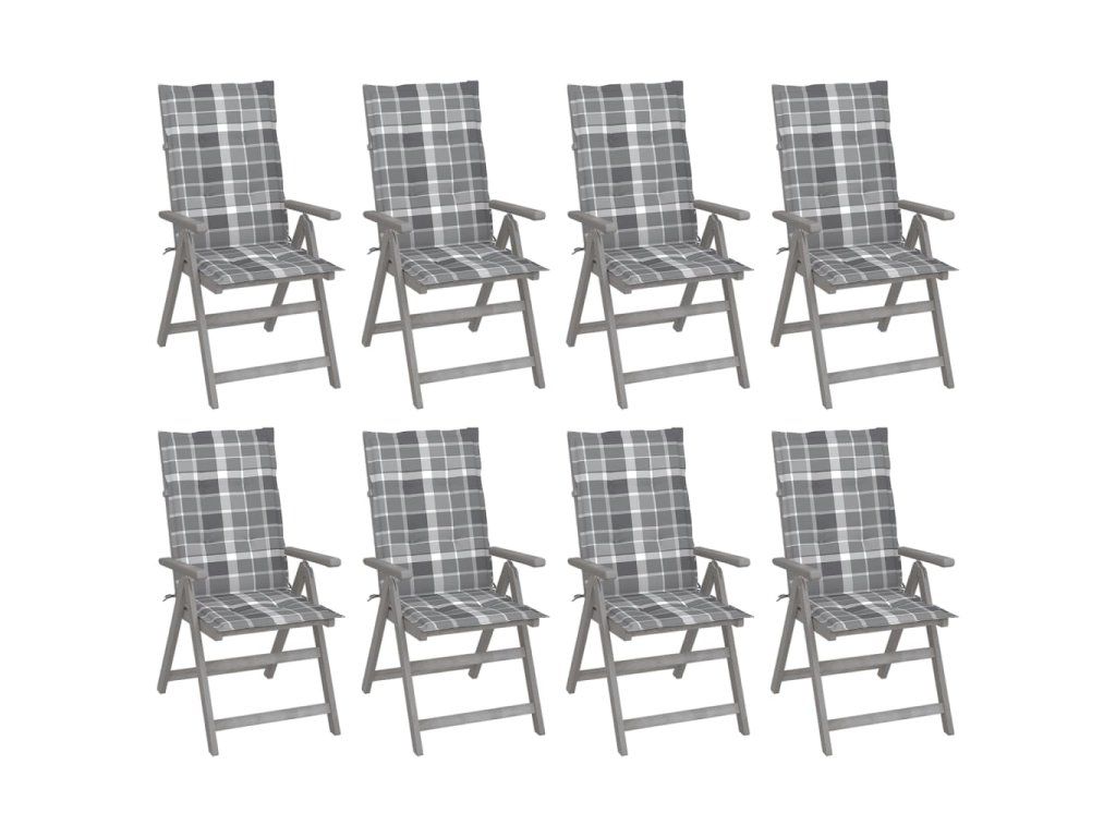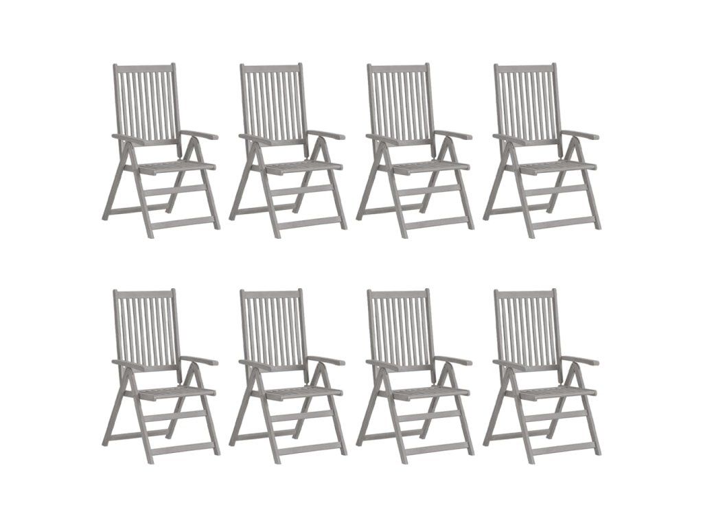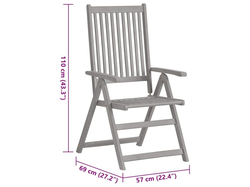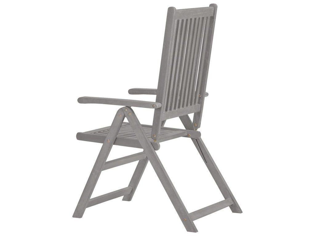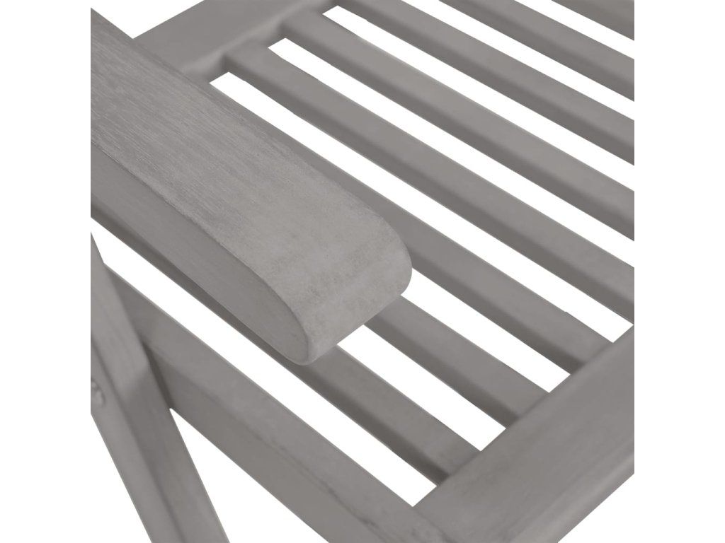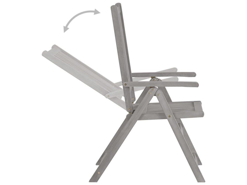 Křesla jsou vyrobená z masivního akáciového dřeva s šedou povrchovou úpravou. Akácie je tvrdé dřevo s hustou kresbou. Židle se pyšní nejen krásným designem, ale také výtečnou stabilitou, odolností a poutavostí. Opěradla židlí lze naklonit do 5 různých poloh, takže si vždy najdete tu, která vám zrovna nejvíc vyhovuje. Tyto židle jsou ideální pro stolování s rodinou nebo pro relaxaci na čerstvém vzduchu. K zahradním židlím obdržíte i podušky, aby se vám na nich co nejlépe sedělo. Každá poduška má 1 elastický popruh a 2 páry šňůrek, za které se dají pevně přivázat k židli.
