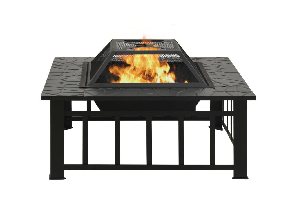 Terasové ohniště je vyrobené z oceli a skvěle absorbuje a vyzařuje teplo. Pletivový kryt vám umožní sledovat hořící oheň a zároveň brání odletování jisker a úlomků, a zajišťuje tak více bezpečí. V pletivovém krytu je též praktický kroužek, za který ho můžete snadno přenášet. Přiložený kovový pohrabáč lze použít jak k sejmutí pletivového krytu, tak k přeskupení palivového dříví. Přenosné ohniště má velkou mísu, takže ho můžete použít nejen k založení ohně, ale také ke skladování chlazených nápojů v ledových kostkách.