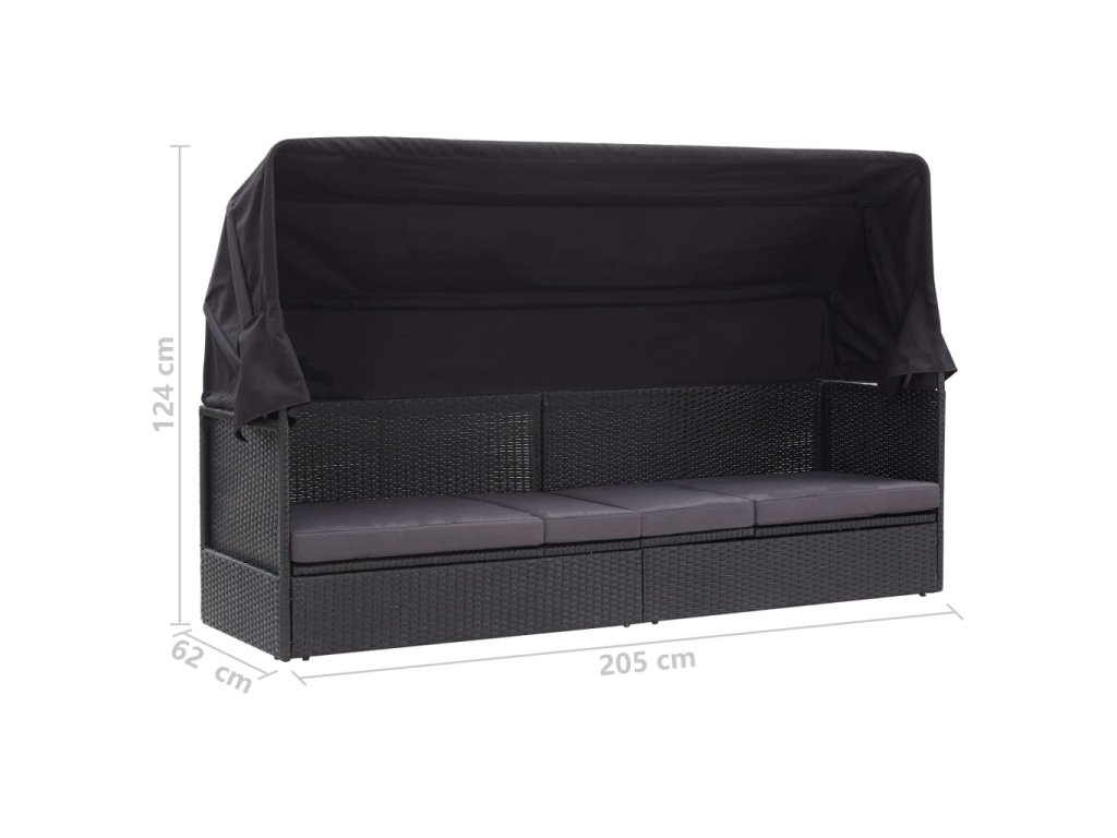 - Rozměr (bez stříšky): 205 x 62 x 70 cm (Š x H x V)