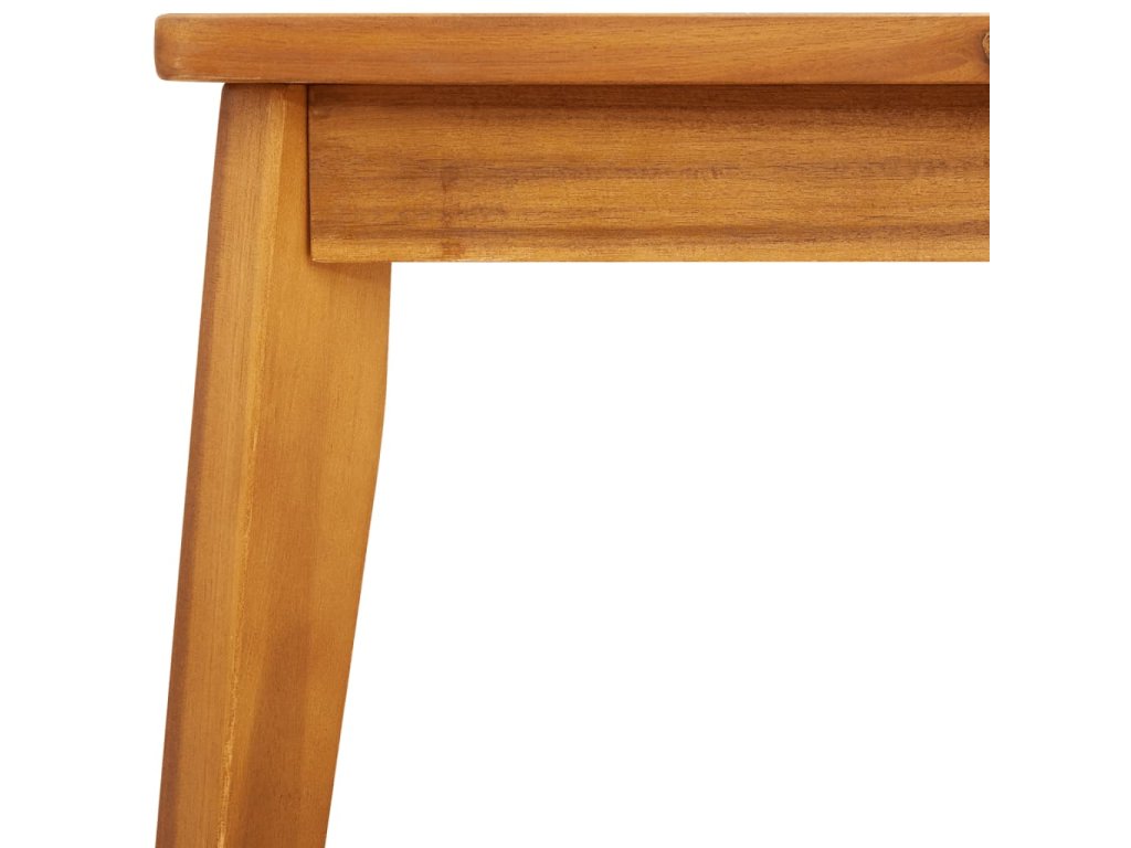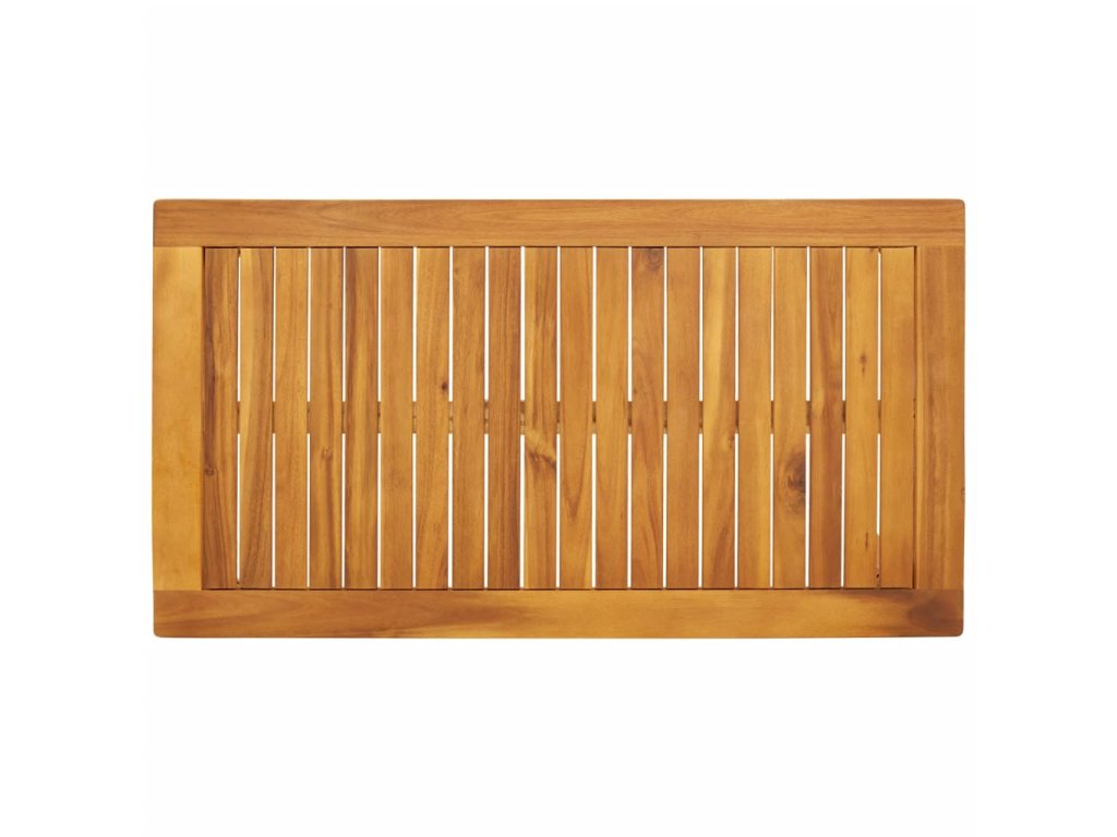 - Stabilní a snadno čistitelná stolní deska: Tento zahradní stolek má desku z akáciového dřeva, která je stabilní, odolná a snadno se čistí vlhkým hadříkem.