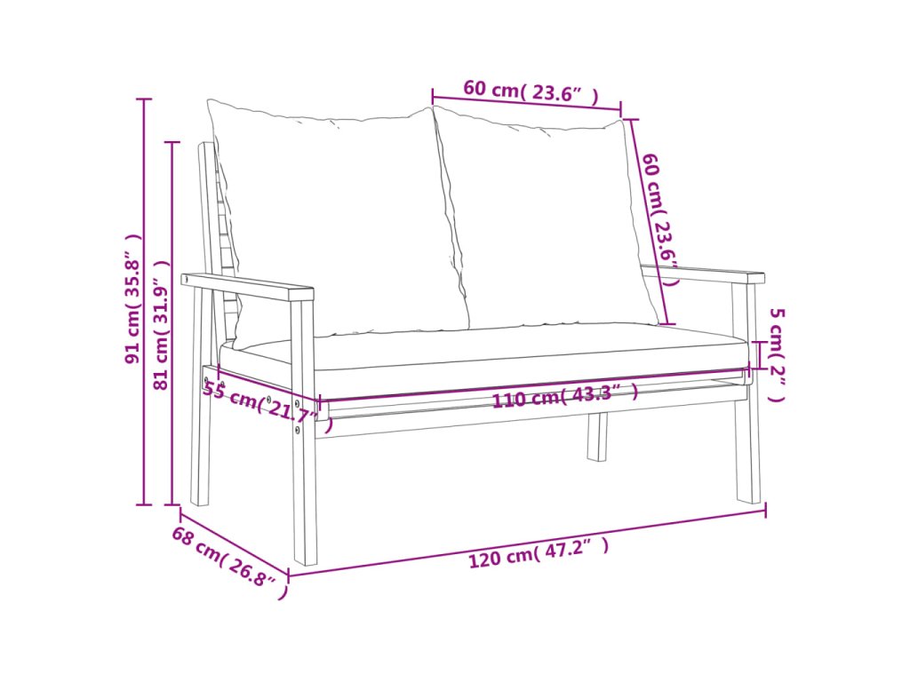 - Rozměry sedáku: 110 x 55 cm