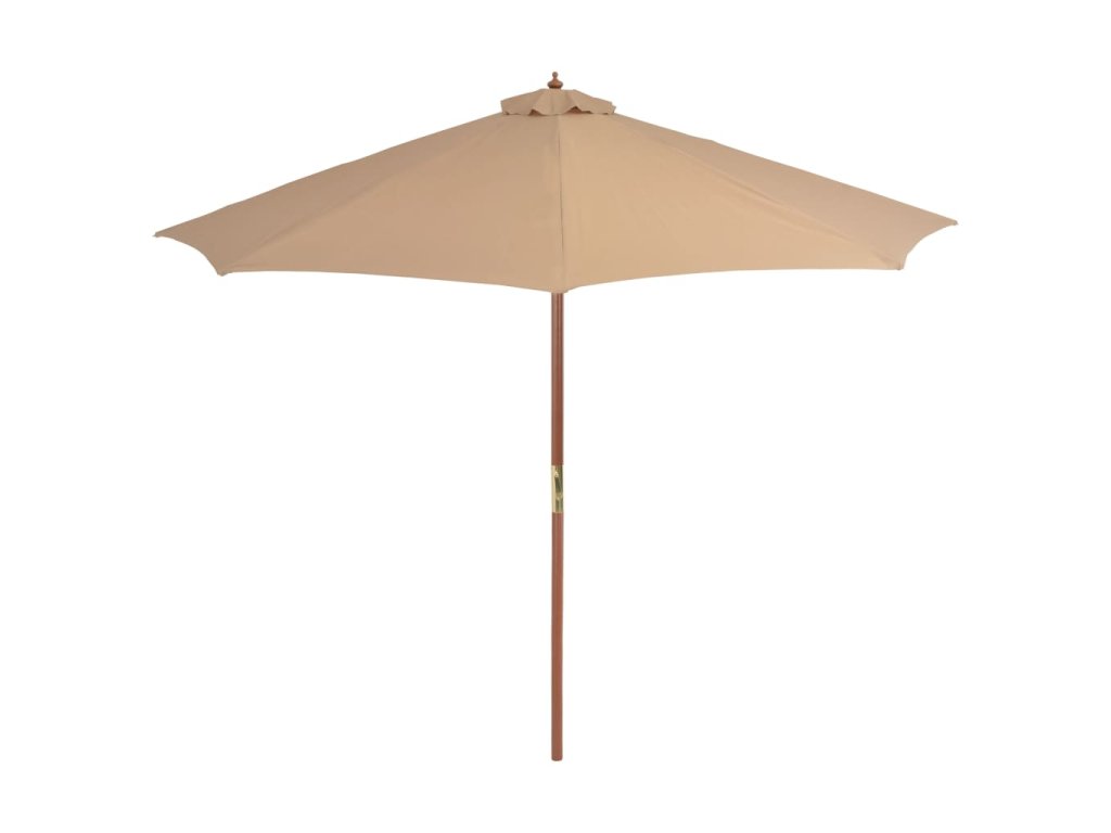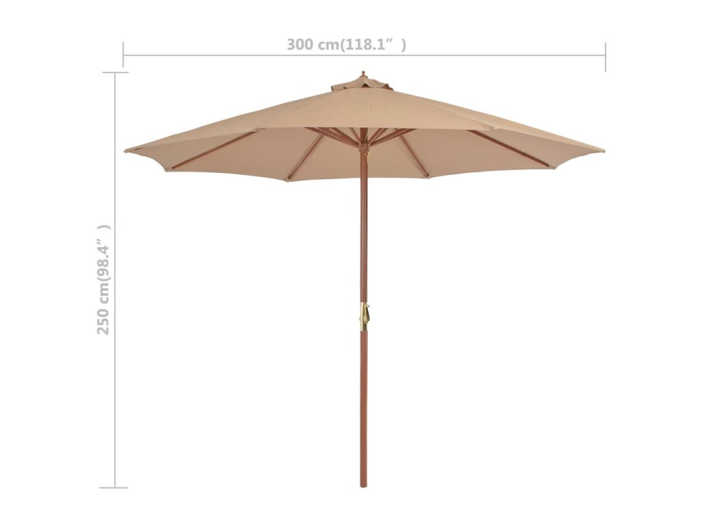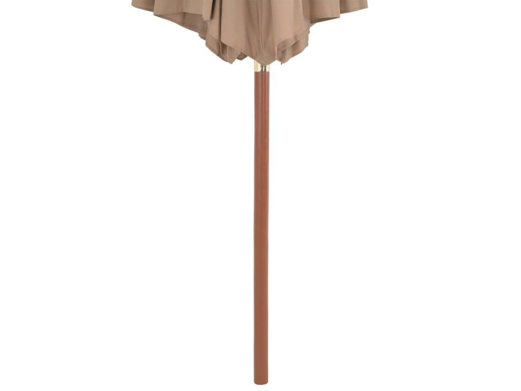 Stříška slunečníku je vyrobena z polyesterové tkaniny, která nepropouští škodlivé UV záření a nevybledne, a poskytne vám optimální ochranu před sluncem. Navíc se snadno čistí. Průměr tyče je 48 mm a můžete ji namontovat na stávající stojan nebo doprostřed stolů s otvorem na slunečník. Silná dřevěná tyč s 8 odolnými žebry zajišťuje, že se slunečník nehýbe a hodně toho vydrží. Zahradní slunečník disponuje klikovým mechanismem, což znamená, že se snadno otevírá i zavírá. Sestavení výrobku je jednoduché.