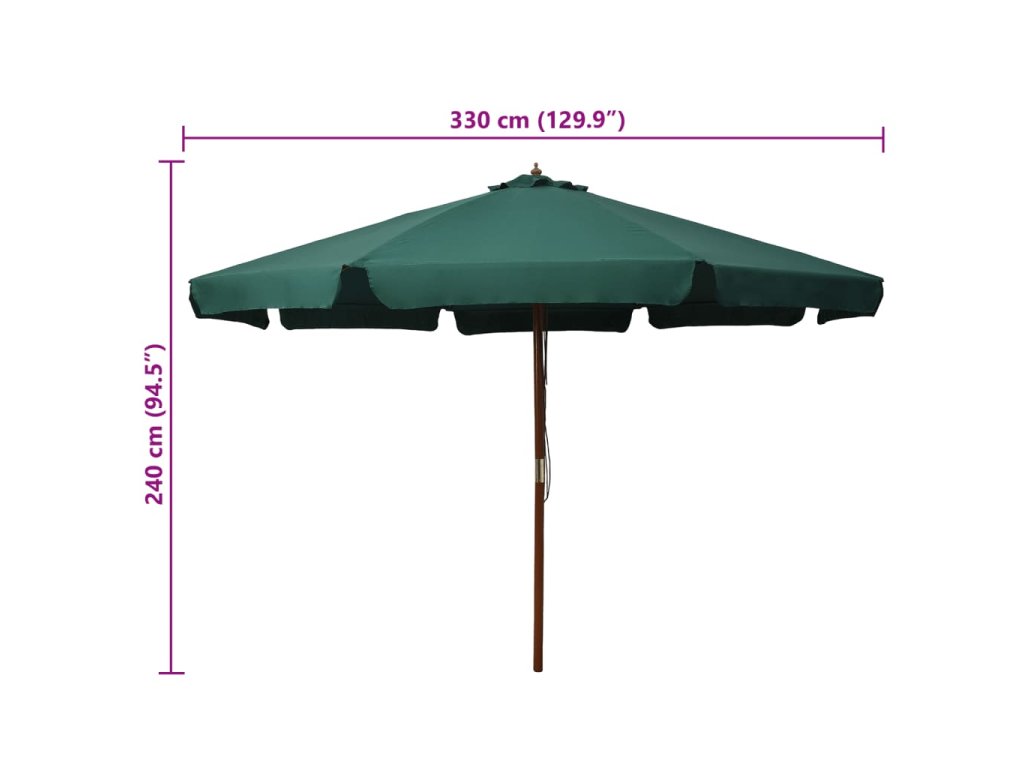 Stříška slunečníku je vyrobená z polyesteru, který je odolný vůči blednutí barvy a snadno se čistí. Slunečníkovou tyč o průměru 48 mm můžete namontovat do svého stojanu nebo doprostřed stolů s otvorem na slunečník. Dřevěná tyč je dostatečně silná, takže se slunečník nehýbe a hodně toho vydrží. Slunečník navíc disponuje i dvojitým kladkovým systémem, což znamená, že se snadno otevírá i zavírá. Sestavení výrobku je jednoduché.