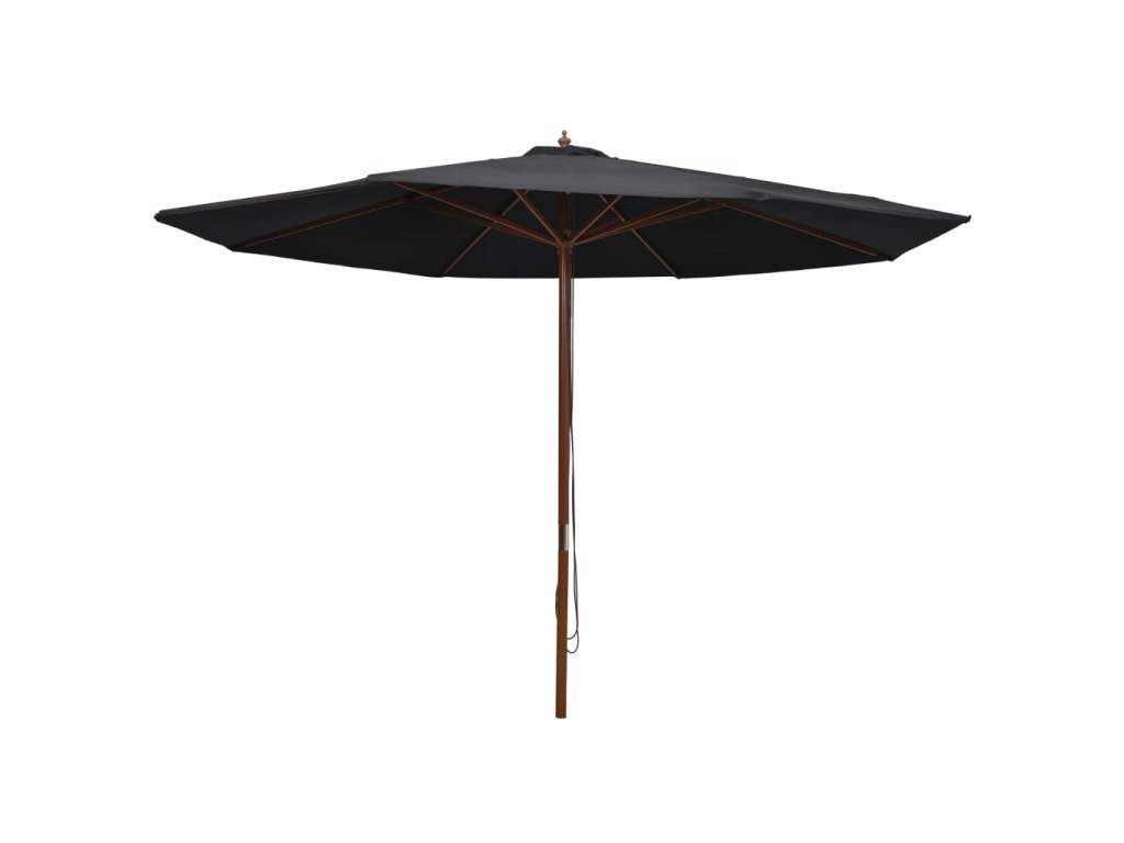 Stříška slunečníku je vyrobená z polyesteru, který nepropouští UV záření a nevybledne. Skvěle vás ochrání před sluncem, a navíc se snadno čistí. Jeho dřevěnou tyč o průměru 48 mm můžete namontovat na stávající stojan nebo doprostřed stolů, které mají otvor. Tyč je dostatečně silná, takže se slunečník nehýbe a hodně toho vydrží. Slunečník navíc disponuje i dvojitým kladkovým systémem, což znamená, že se snadno otevírá i zavírá. Sestavení výrobku je jednoduché.