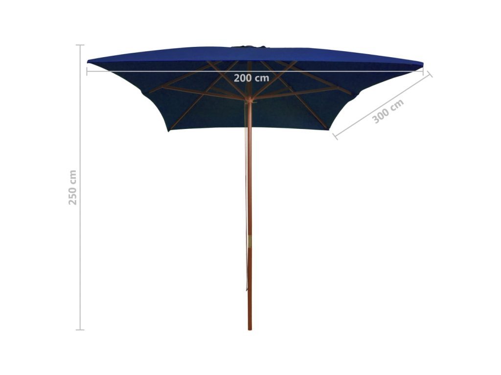 Stříška slunečníku je vyrobená z polyesterové tkaniny, která nepropouští škodlivé UV záření a nebledne, a poskytne vám optimální ochranu před sluncem. Navíc se snadno čistí. Průměr tyče je 38 mm a můžete ji namontovat na stávající stojan nebo doprostřed stolů s otvorem na slunečník. Silná dřevěná tyč se 6 odolnými žebry zajišťuje stabilitu a odolnost konstrukce. Zahradní slunečník disponuje klikovým mechanismem, takže se snadno otevírá i zavírá.