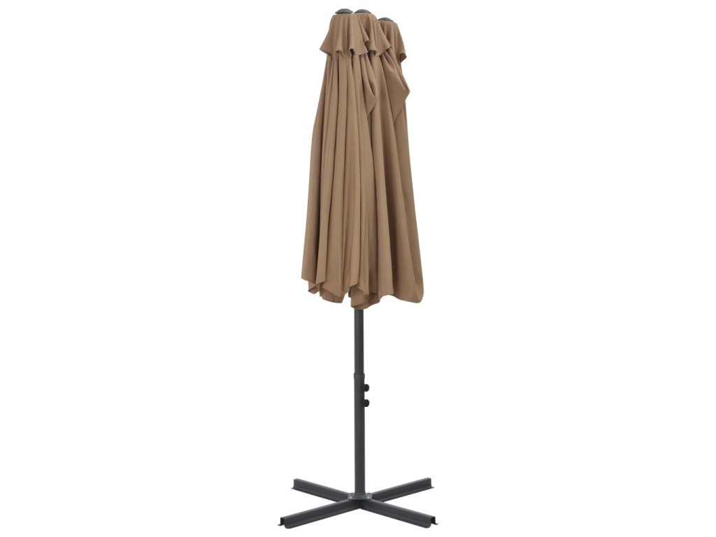 Tento slunečník s dvojitou stříškou vám poskytne stín a ochrání vás tak před sluníčkem a jeho škodlivým UV zářením.