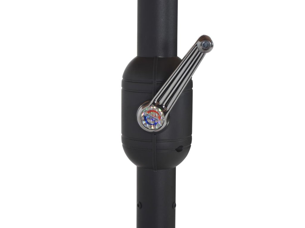 Stříška slunečníku je vyrobena z polyesterové tkaniny, která nepropouští škodlivé UV záření a nevybledne, a poskytne vám optimální ochranu před sluncem. Navíc se snadno čistí. Je vybaven pevnou křížovou základnou pro větší stabilitu. Exkluzivní konstrukce tohoto slunečníku vám nabízí mimořádně velkou plochu k blokování slunce. Silná hliníková tyč s 12 odolnými žebry zajišťuje, že se slunečník nehýbe a hodně toho vydrží. Zahradní slunečník disponuje klikovým mechanismem, což znamená, že se snadno otevírá i zavírá. Sestavení výrobku je jednoduché.