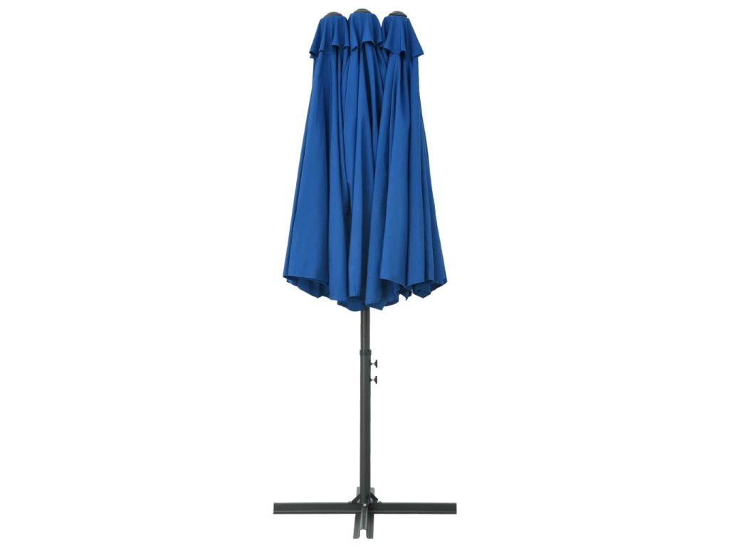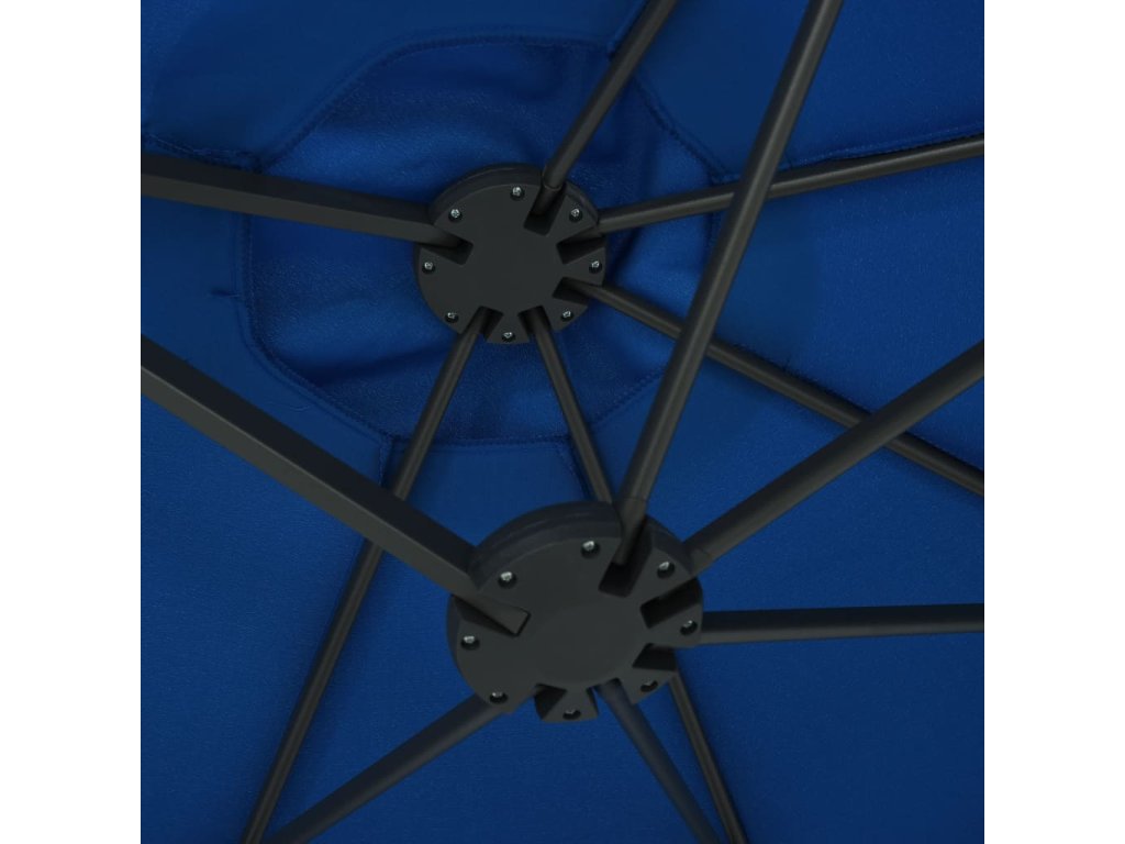Tento slunečník s dvojitou stříškou vám poskytne stín a ochrání vás tak před sluníčkem a jeho škodlivým UV zářením.