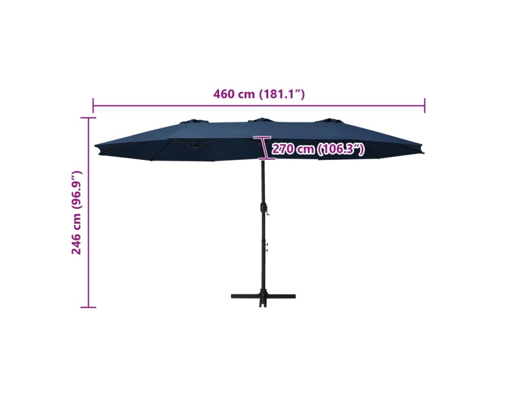 Stříška slunečníku je vyrobena z polyesterové tkaniny, která nepropouští škodlivé UV záření a nevybledne, a poskytne vám optimální ochranu před sluncem. Navíc se snadno čistí. Je vybaven pevnou křížovou základnou pro větší stabilitu. Exkluzivní konstrukce tohoto slunečníku vám nabízí mimořádně velkou plochu k blokování slunce. Silná hliníková tyč s 12 odolnými žebry zajišťuje, že se slunečník nehýbe a hodně toho vydrží. Zahradní slunečník disponuje klikovým mechanismem, což znamená, že se snadno otevírá i zavírá. Sestavení výrobku je jednoduché.