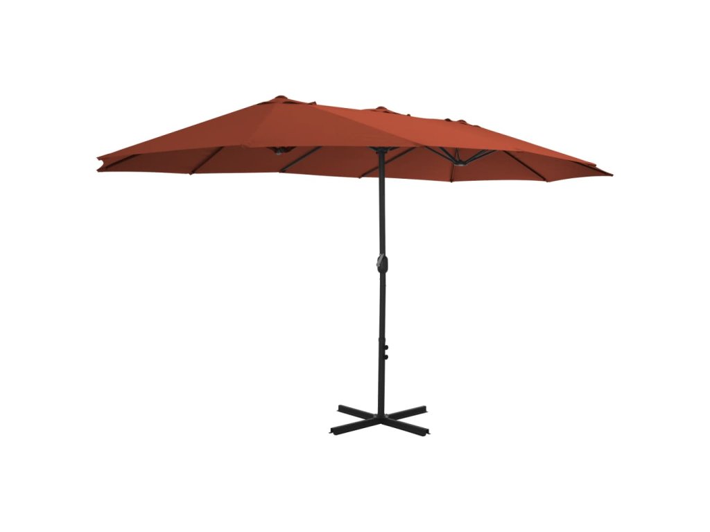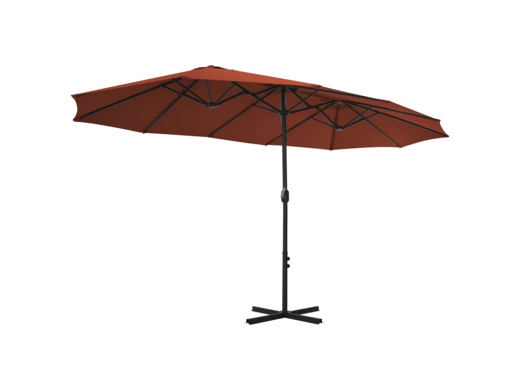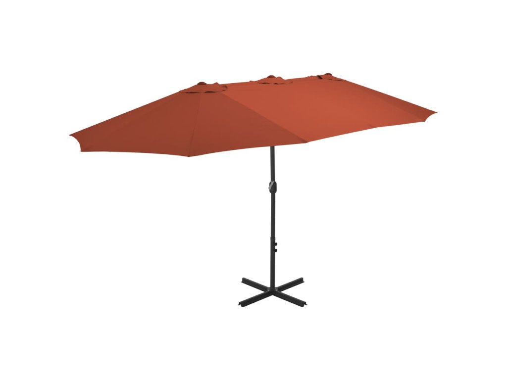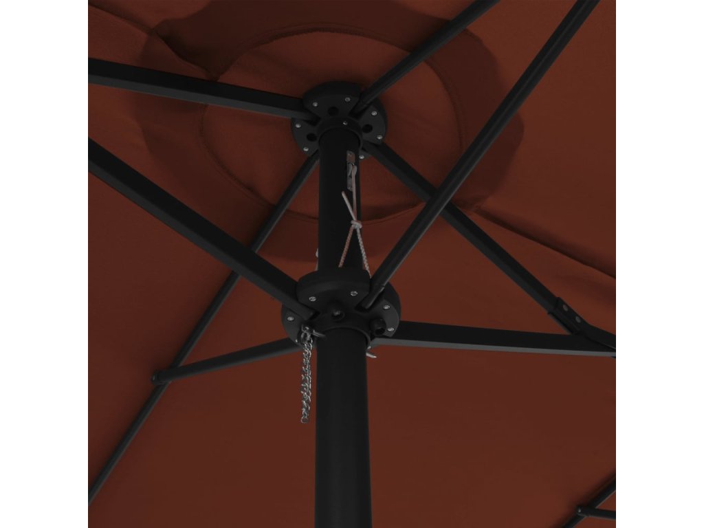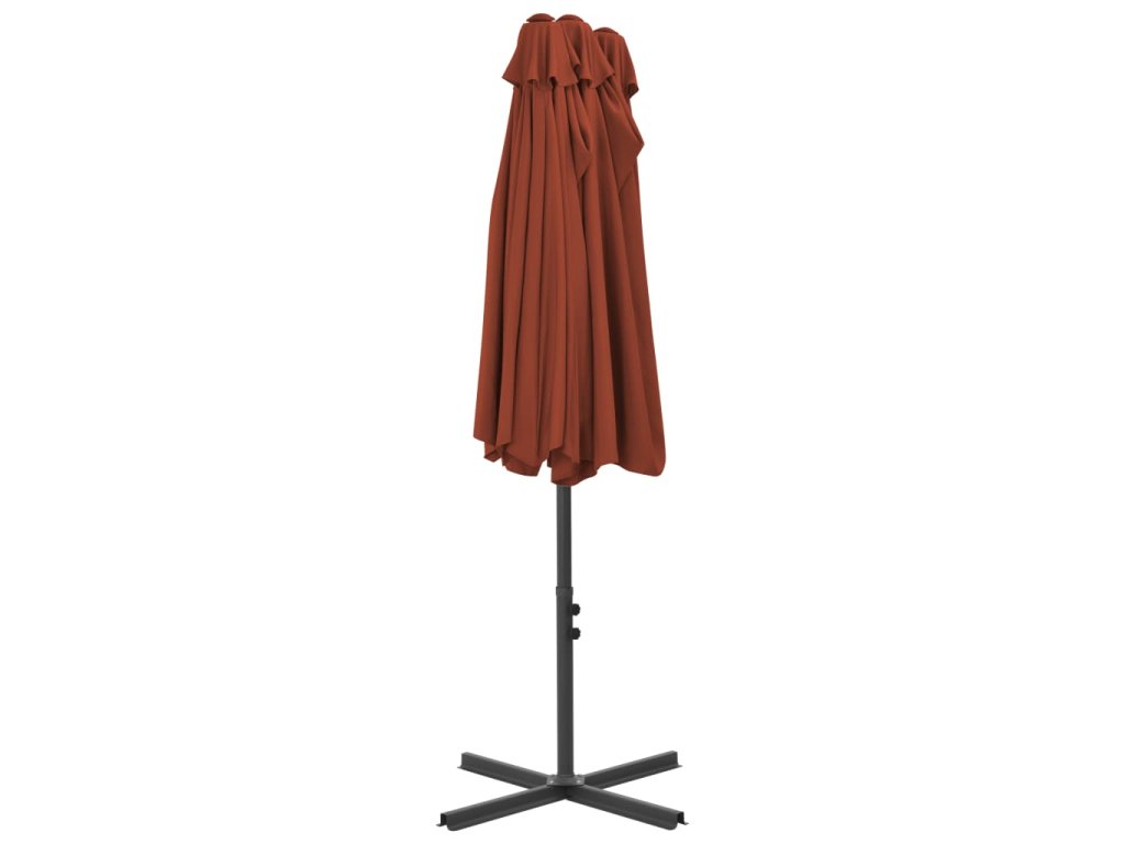 Stříška slunečníku je vyrobena z polyesterové tkaniny, která nepropouští škodlivé UV záření a nevybledne, a poskytne vám optimální ochranu před sluncem. Navíc se snadno čistí. Je vybaven pevnou křížovou základnou pro větší stabilitu. Exkluzivní konstrukce tohoto slunečníku vám nabízí mimořádně velkou plochu k blokování slunce. Silná hliníková tyč s 12 odolnými žebry zajišťuje, že se slunečník nehýbe a hodně toho vydrží. Zahradní slunečník disponuje klikovým mechanismem, což znamená, že se snadno otevírá i zavírá. Sestavení výrobku je jednoduché.