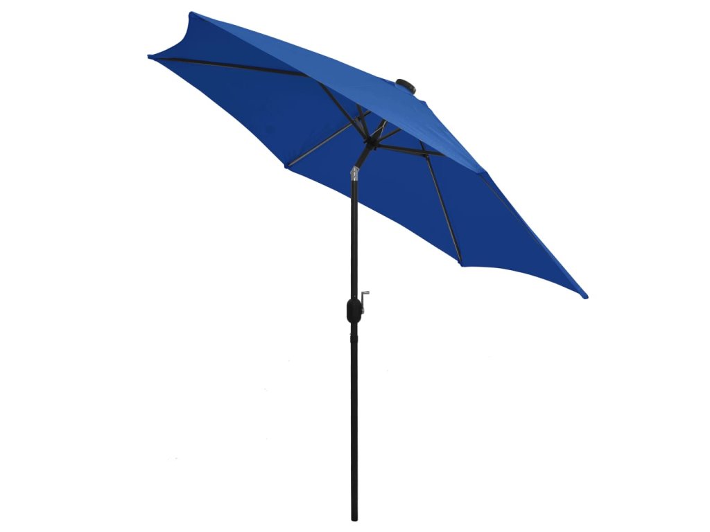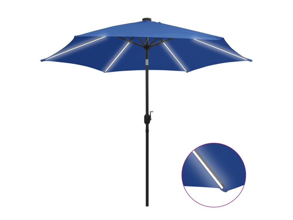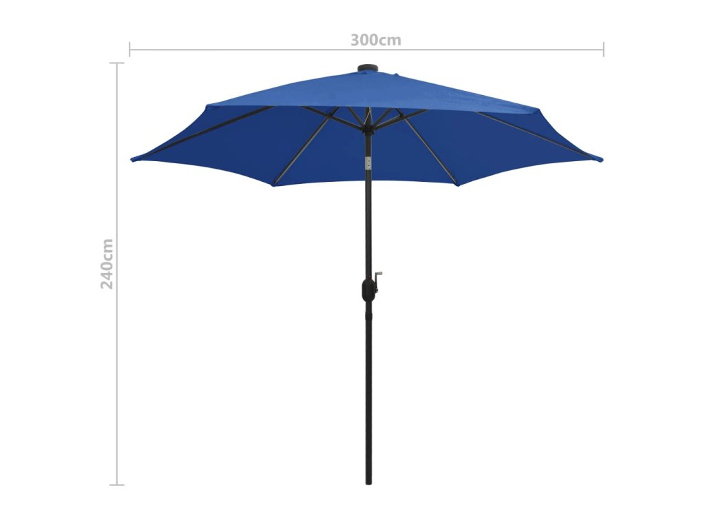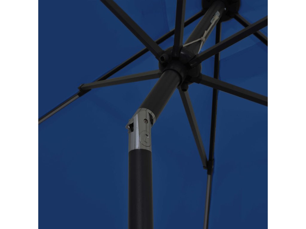 Stříška slunečníku je vyrobená z polyesterové tkaniny, která nebledne a nepropouští škodlivé UV záření, takže vám poskytne optimální ochranu před sluncem a snadno se čistí. Silná hliníková tyč s 6 odolnými žebry přispívá k výtečné stabilitě produktu a prodlužuje jeho životnost. Zahradní slunečník je vybavený klikovým mechanismem, jehož prostřednictvím ho lze snadno otevírat i zavírat. Integrované LED pásky vám večer pomohou navodit útulnou a romantickou atmosféru. Sestavení produktu je jednoduché.