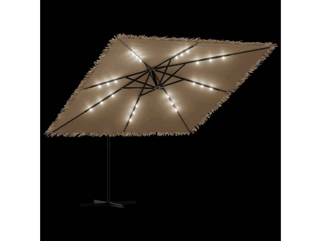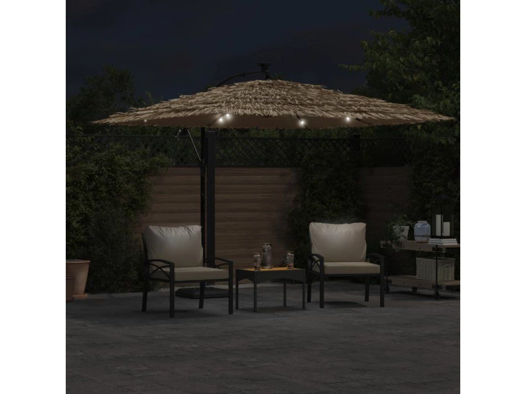 - Jasná LED světla: Integrovaná LED světla slunečníku osvětlí váš venkovní obytný prostor a vytvoří útulnou a romantickou atmosféru po západu slunce.