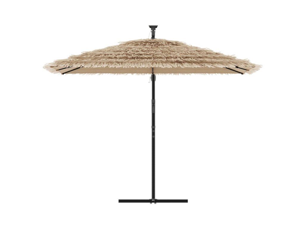 - Robustní konstrukce: Tento zahradní slunečník se opírá o robustní tyč a žebra v horní části, která zajišťují, že kryt zůstane vzpřímený i za větrných dnů.