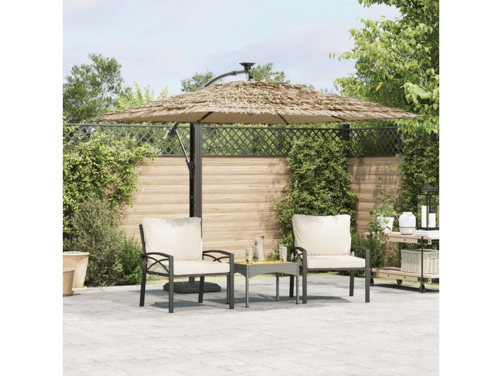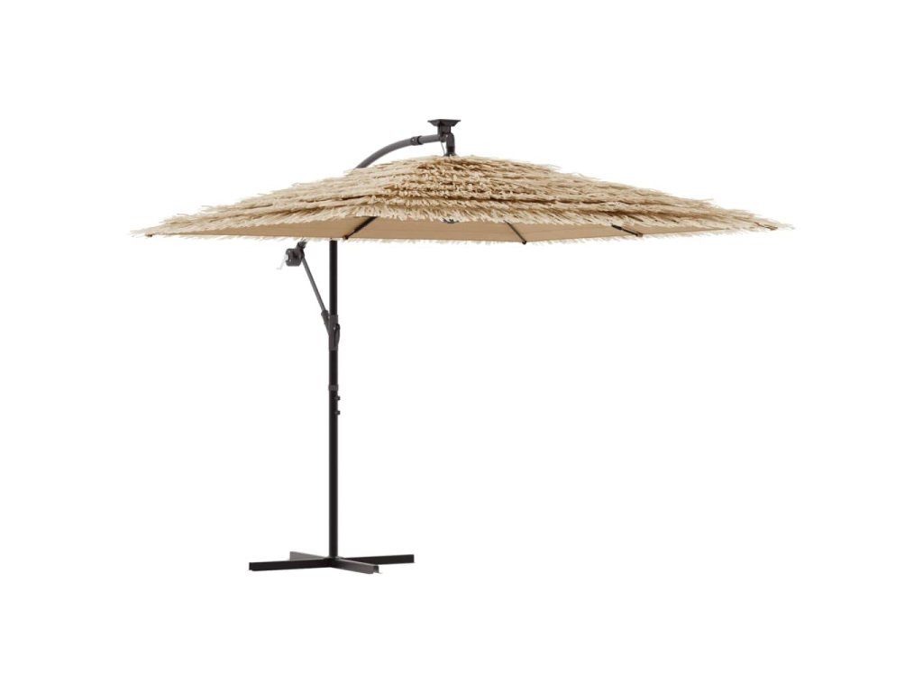 - Ochrana proti slunci a dešti: Tento venkovní slunečník je vyroben z odolného polyesteru a poskytuje ochranu před sluncem a deštěm.