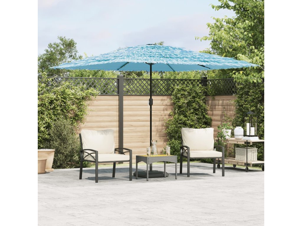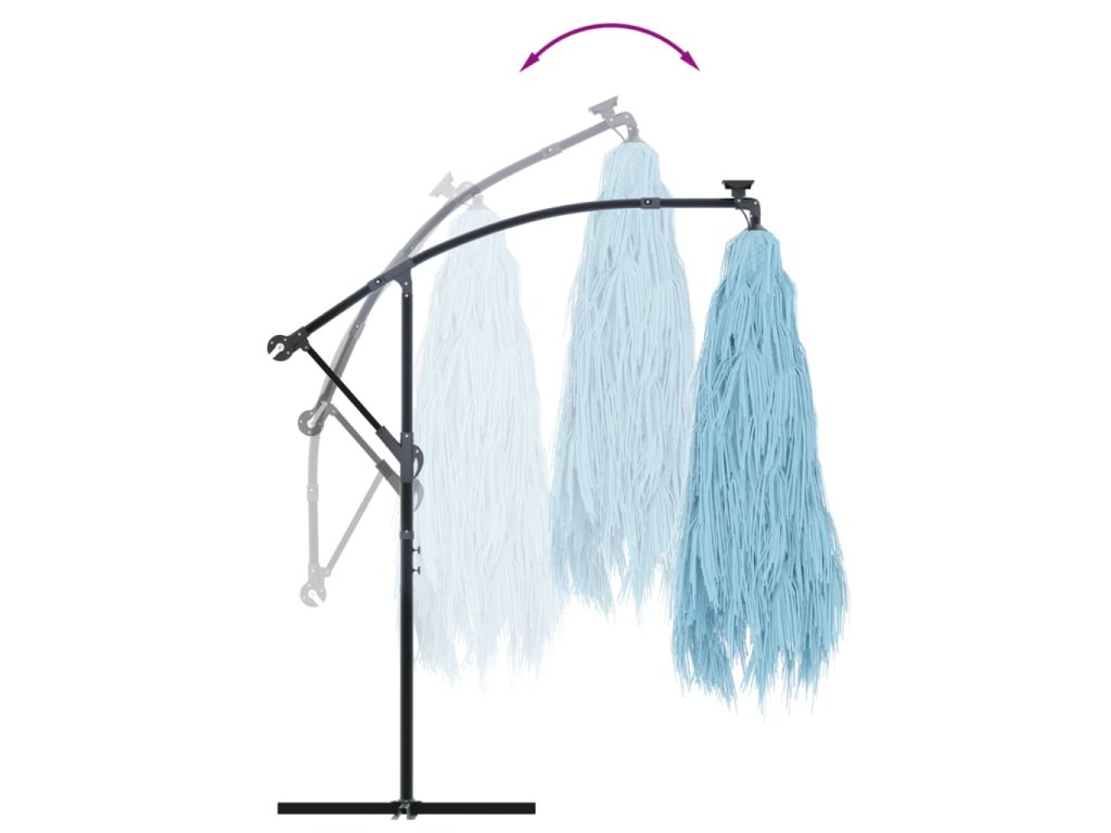 - Ochrana proti slunci a dešti: Tento venkovní slunečník je vyroben z odolného polyesteru a poskytuje ochranu před sluncem a deštěm.