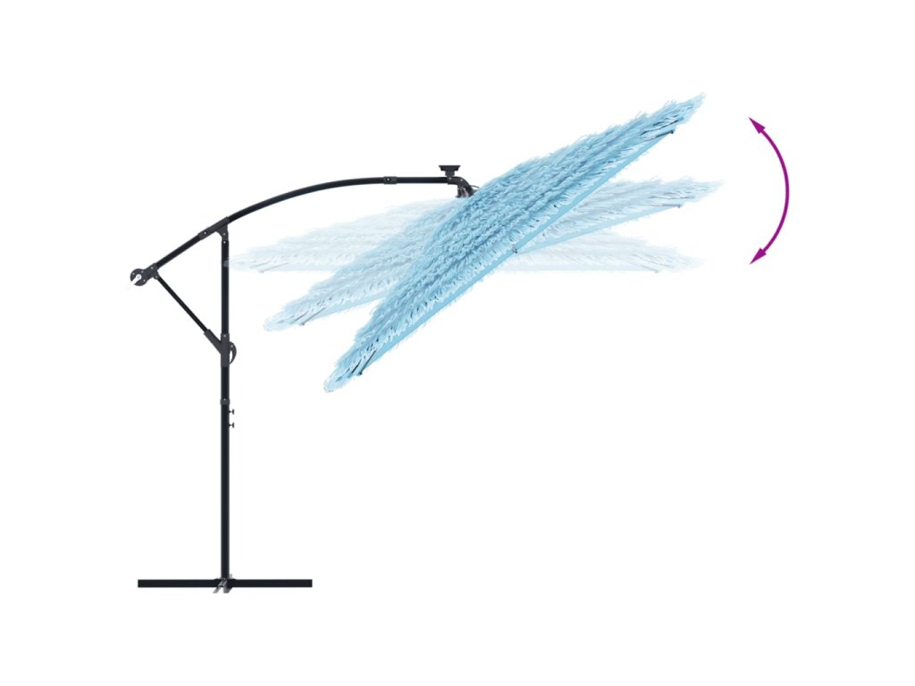 - Robustní konstrukce: Tento zahradní slunečník se opírá o robustní tyč a žebra v horní části, která zajišťují, že kryt zůstane vzpřímený i za větrných dnů.
