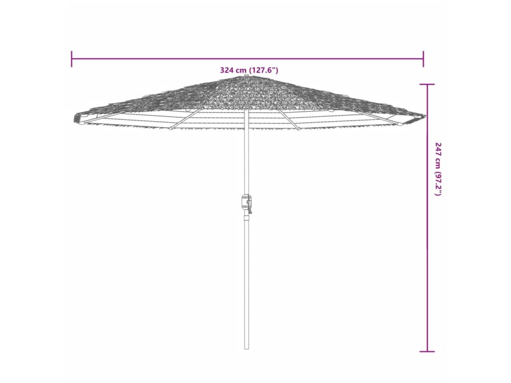 - Robustní konstrukce: Tento zahradní slunečník se opírá o robustní tyč a žebra v horní části, která zajišťují, že kryt zůstane vzpřímený i za větrných dnů.
