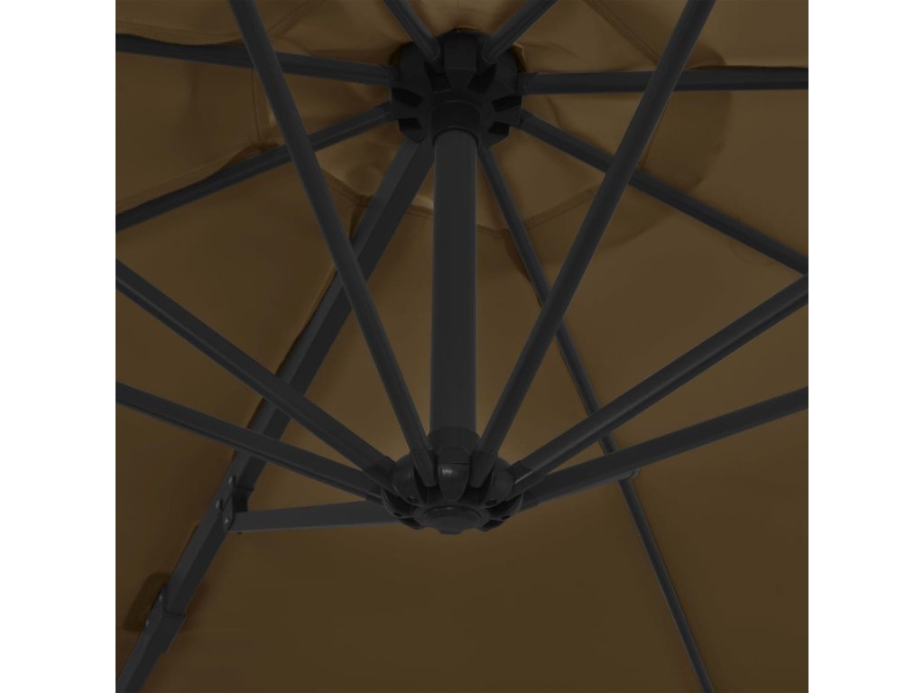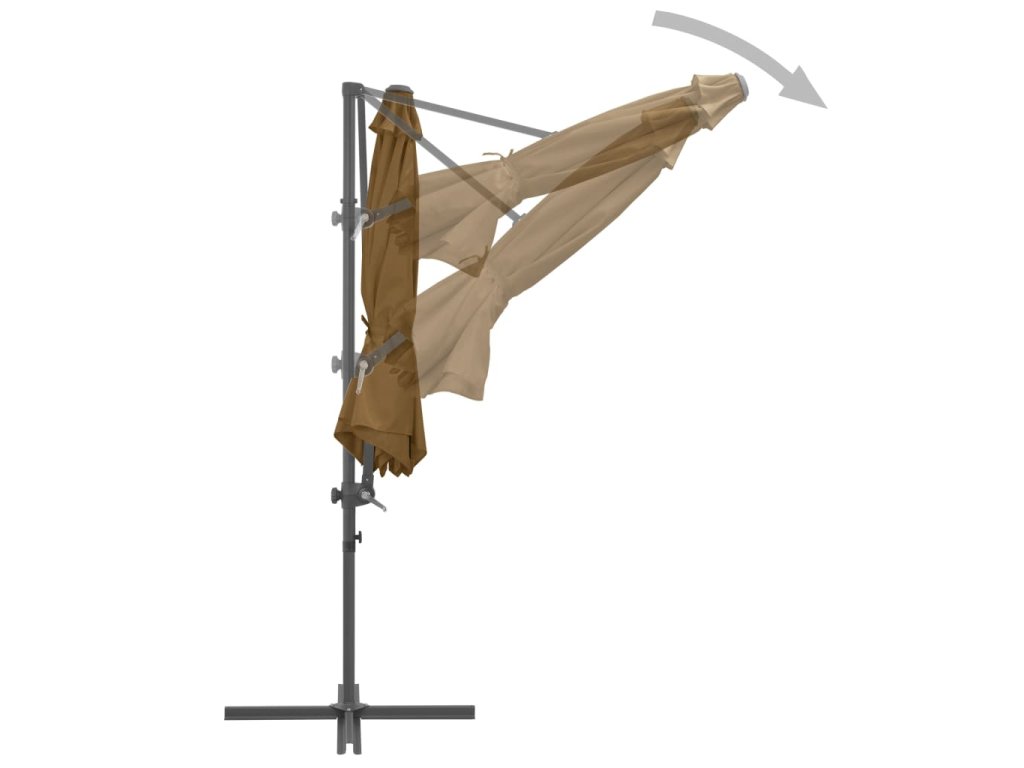 Slunečník se skládá z odolné hliníkové kostry, velké stříšky odolné proti UV záření a dodatečného přenosného stojanu. Představuje tedy ideální ochranu před sluncem.