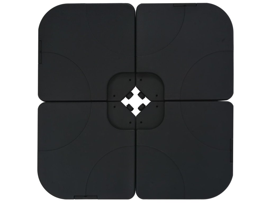 Dodatečný podstavec se skládá ze čtyř samostatných částí a lze jej naplnit 60 litry vody nebo 80 kg písku. Skvěle se hodí pro slunečníky s křížovou základnou. Pokud podstavec vyprázdníte, je velice lehký a dá se tedy snadno přenášet.