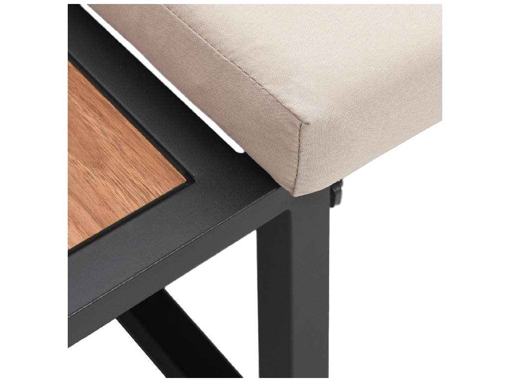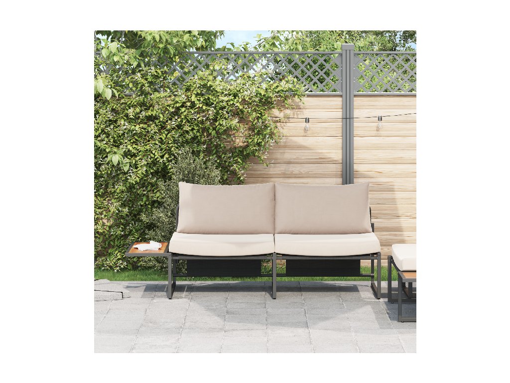 - Pevný kovový rám, pokrytý práškovou barvou, zaručuje trvanlivost a stabilitu, takže vaše venkovní pohovka vydrží v průběhu ročních období.