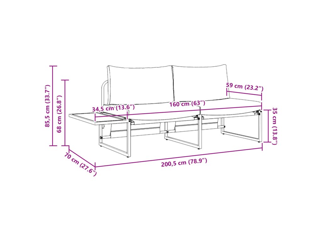 - Rozměry: 70 x 200,5 x 85,5 cm (Š x D x V)