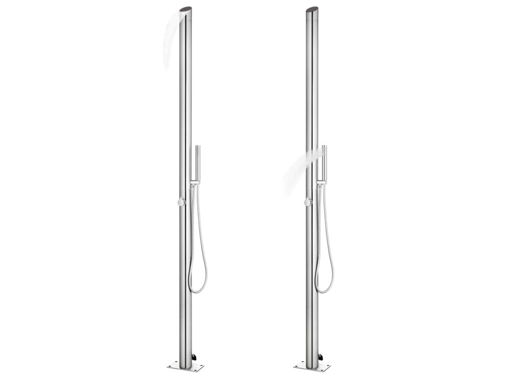 Tato zahradní sprcha je vyrobená z nerezové oceli, takže je klimaticky odolná. Sprchový systém má hlavovou sprchu a ruční sprchu, aby vám usnadnil práci na zahradě a umožnil zalévání a rychlé sprchování. Ruční sprcha má dvojitě zajištěnou pružnou 1,5m zahradní hadici. Je také vybavená mosazným držákem na ruční sprchu.