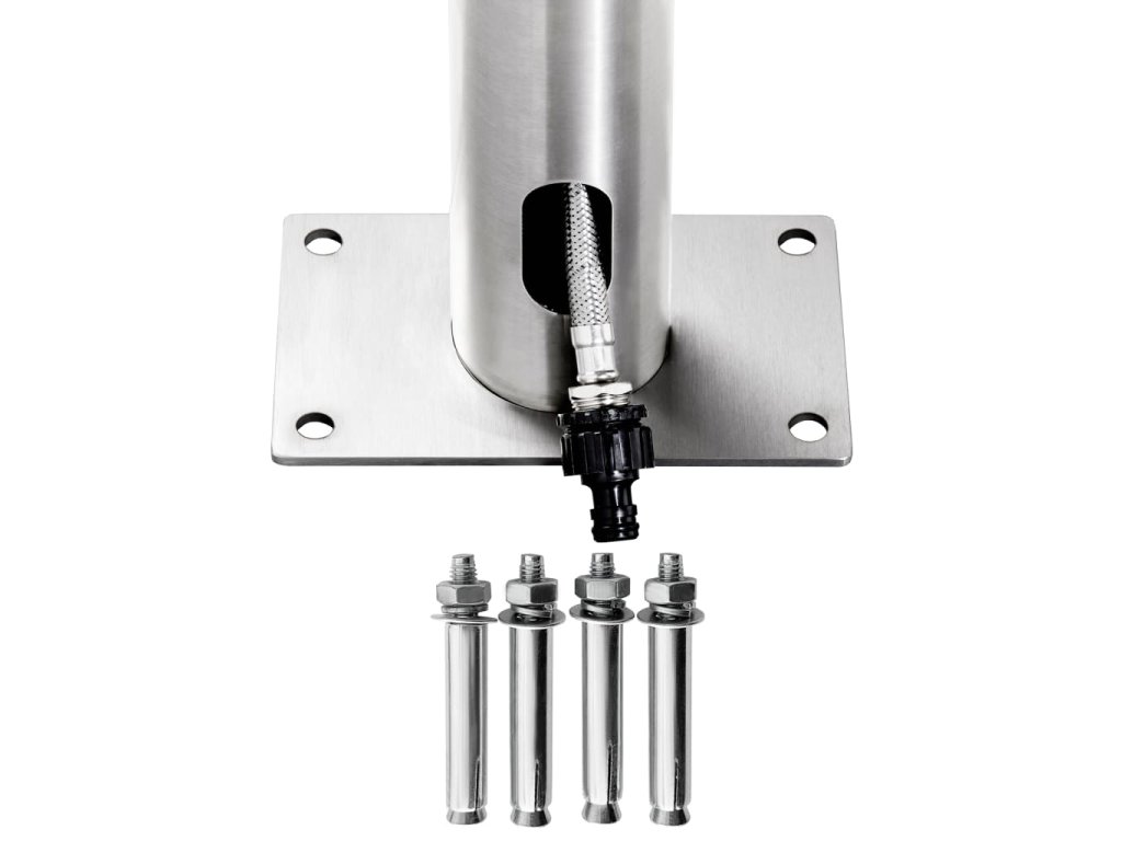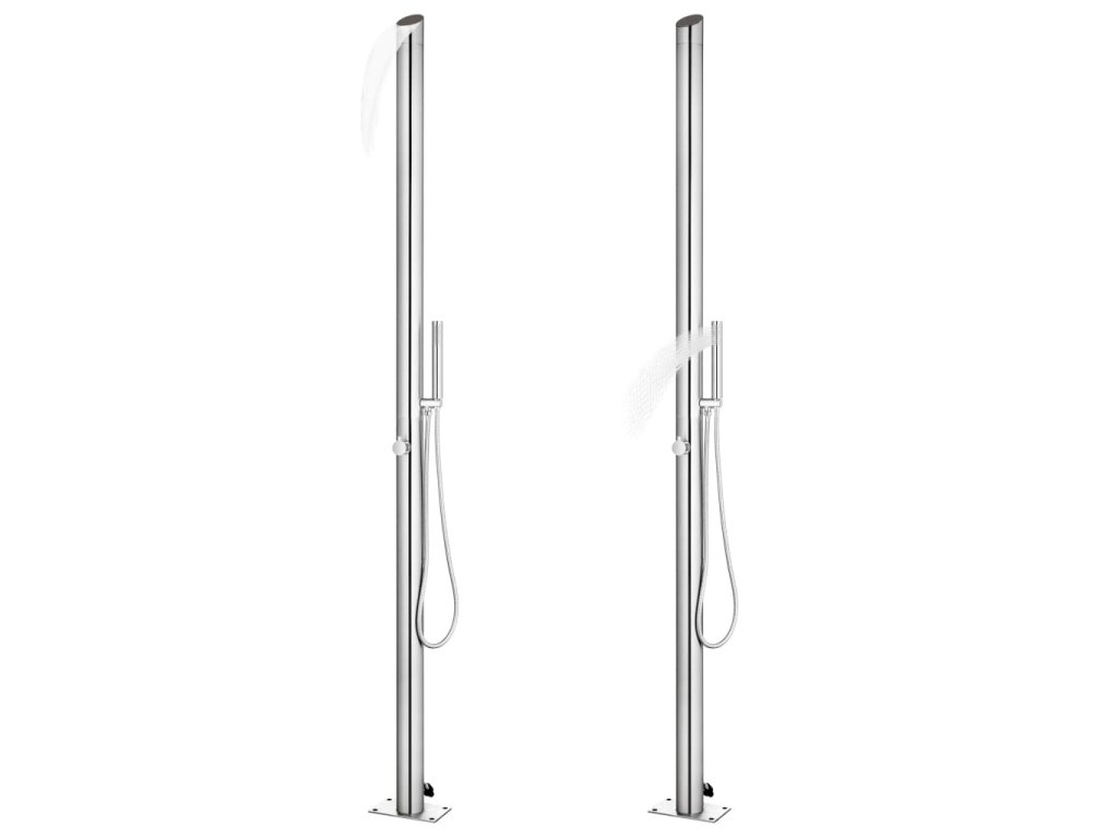 Tato zahradní sprcha je vyrobená z nerezové oceli, takže je klimaticky odolná. Sprchový systém má hlavovou sprchu a ruční sprchu, aby vám usnadnil práci na zahradě a umožnil zalévání a rychlé sprchování. Ruční sprcha má dvojitě zajištěnou pružnou 1,5m zahradní hadici. Je také vybavená mosazným držákem na ruční sprchu.