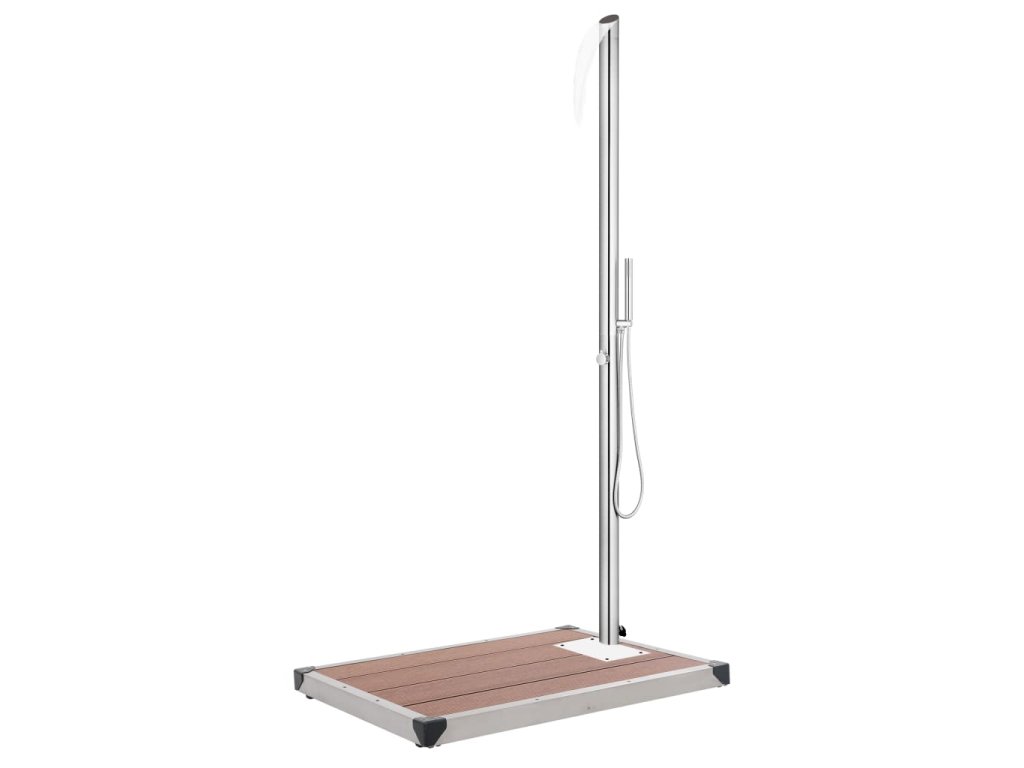 Odolná a korozivzdorná základna sprchy je vyrobená z prvotřídního WPC a rámovaná nerezovou ocelí s kartáčovaným povrchem, což jí zaručuje dlouhou životnost. Také nabízí nejvyšší úroveň hygieny, a proto je ideální pro váš venkovní prostor v každém ohledu. Jelikož je opravdu robustní a všestranná, může tato sprchová vanička sloužit také jako základna žebříku do bazénu.