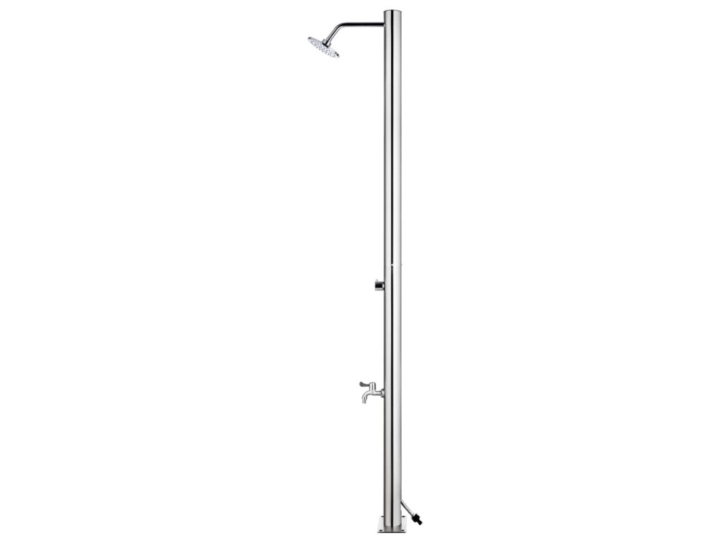 Venkovní sprcha je vyrobená z nerezové oceli, takže je odolná vůči povětrnostním vlivům. Sprchový systém s hlavovou sprchou a kohoutkem na mytí nohou vyhoví všem vašim potřebám při zahradničení, zalévání a rychlém sprchování.