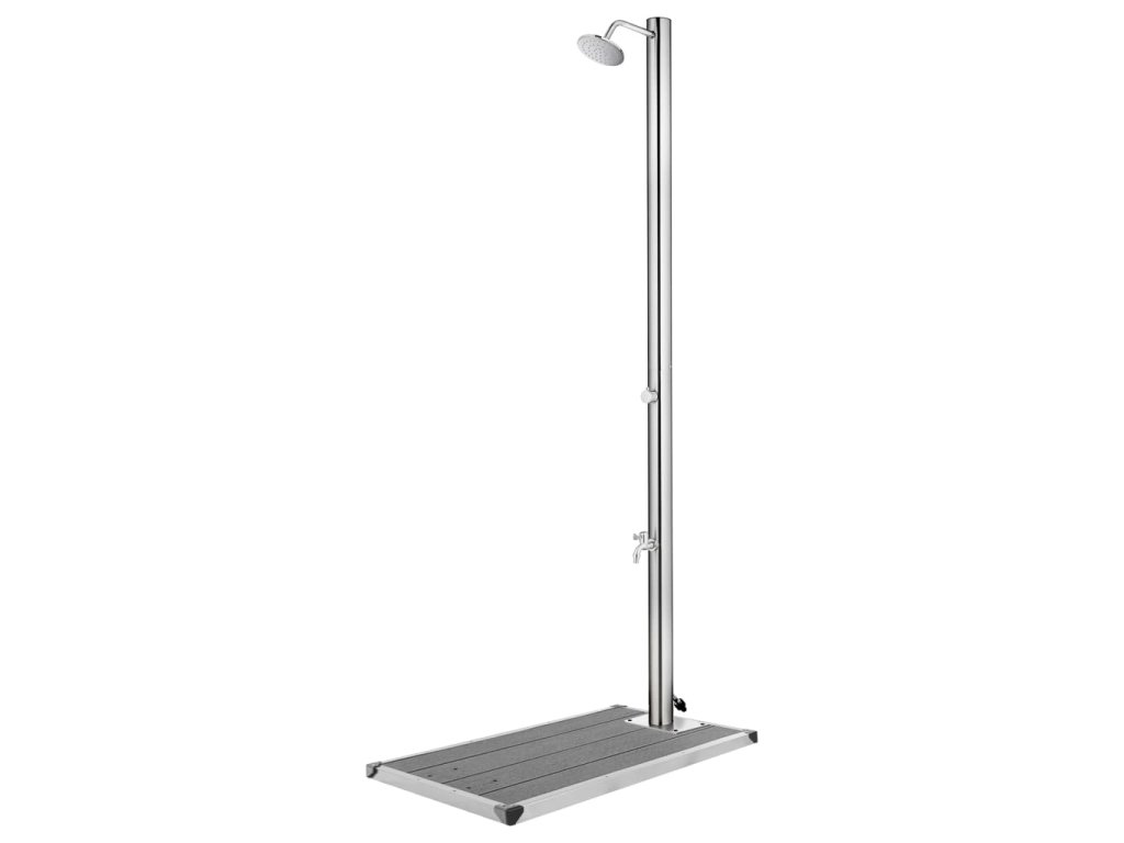 Odolná a korozivzdorná základna sprchy je vyrobená z prvotřídního WPC a rámovaná nerezovou ocelí s kartáčovaným povrchem, což jí zaručuje dlouhou životnost. Také nabízí nejvyšší úroveň hygieny, a proto je ideální pro váš venkovní prostor v každém ohledu. Jelikož je opravdu robustní a všestranná, může tato sprchová vanička sloužit také jako základna žebříku do bazénu.