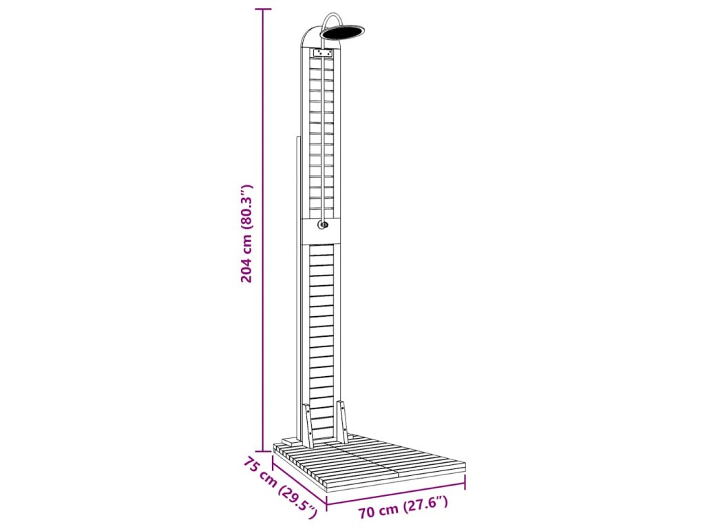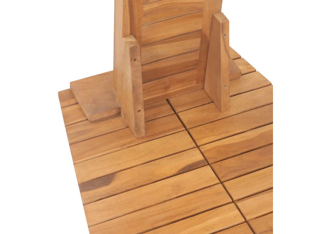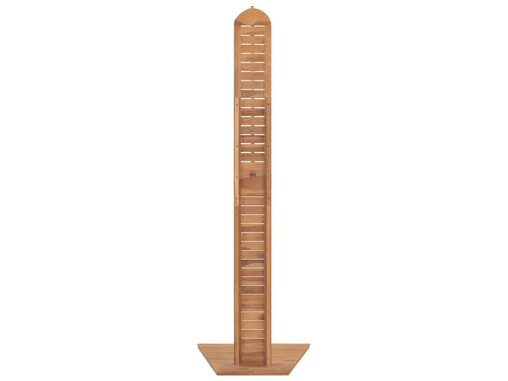 - Robustní materiál: Zahradní sprcha je zhotovená z extrémně odolného teakového tvrdého dřeva, které již prošlo procesem smršťování, bylo uměle vysušené a poté jemně a dohladka obroušené. Teakové dřevo je oceňované pro svou výjimečnou pevnost a klimatickou odolnost, a proto je zdaleka nejvhodnějším materiálem pro výrobu zahradních produktů. Je to skvělá volba, pokud si chcete pořídit zahradní sprchu, která vám vydrží sloužit dlouhá léta. Trubka je vyrobena z nerezové oceli.
