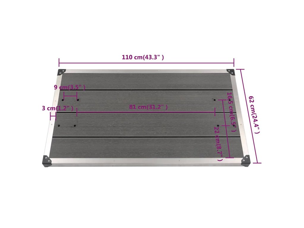 Tato korozivzdorná sprchová základna je vyrobená z prvotřídního WPC a rámovaná nerezovou ocelí s kartáčovaným povrchem, což jí zaručuje dlouhou životnost. Sprchová vanička nabízí nejvyšší úroveň hygieny, a tak je v každém ohledu ideální pro váš venkovní prostor. Snadno se také čistí vlhkým hadříkem. Jelikož je opravdu robustní a všestranný, může tento produkt sloužit také jako základna žebříku do bazénu.