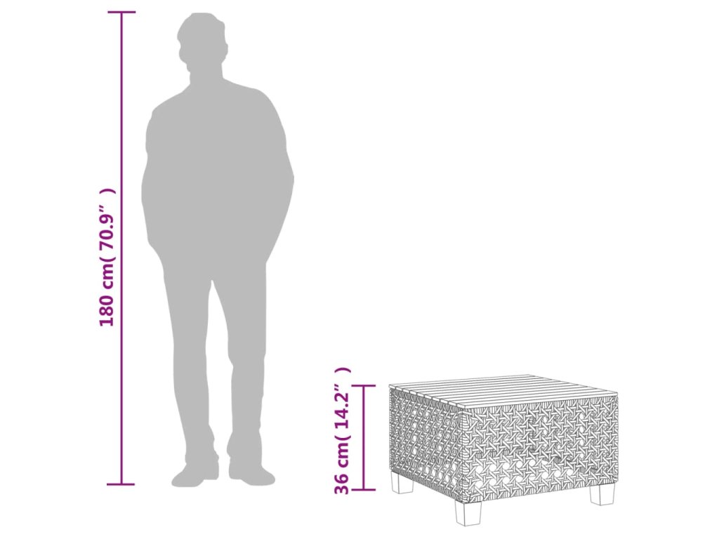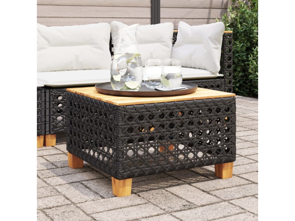 - Materiál: PE ratan, práškově lakovaná ocel, masivní akáciové dřevo s přírodní olejovou povrchovou úpravou