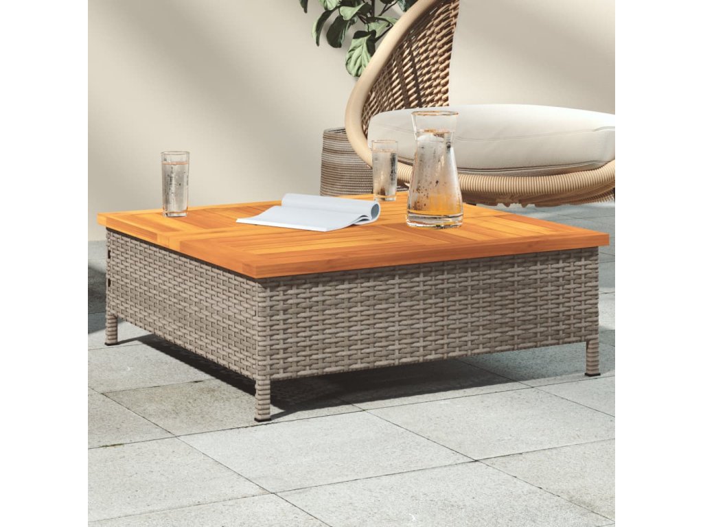 - Stabilní a snadno čistitelná stolní deska: Tento zahradní stolek má desku z akáciového dřeva, která je stabilní, odolná a snadno se čistí vlhkým hadříkem.