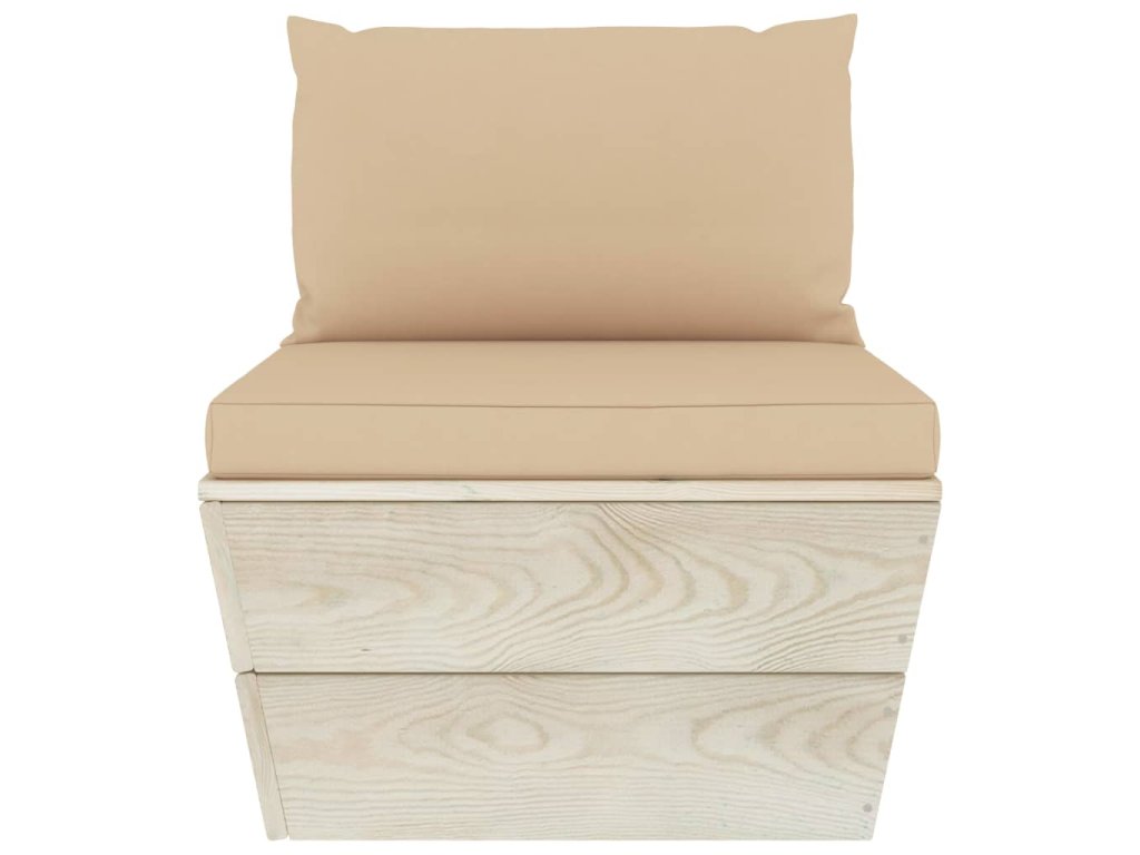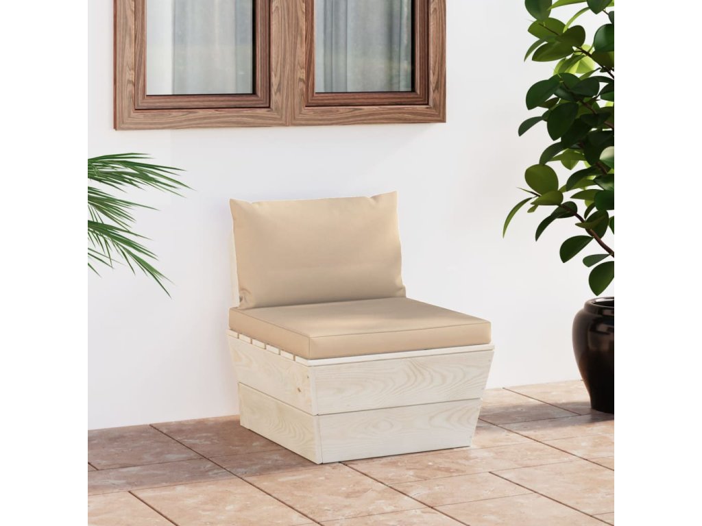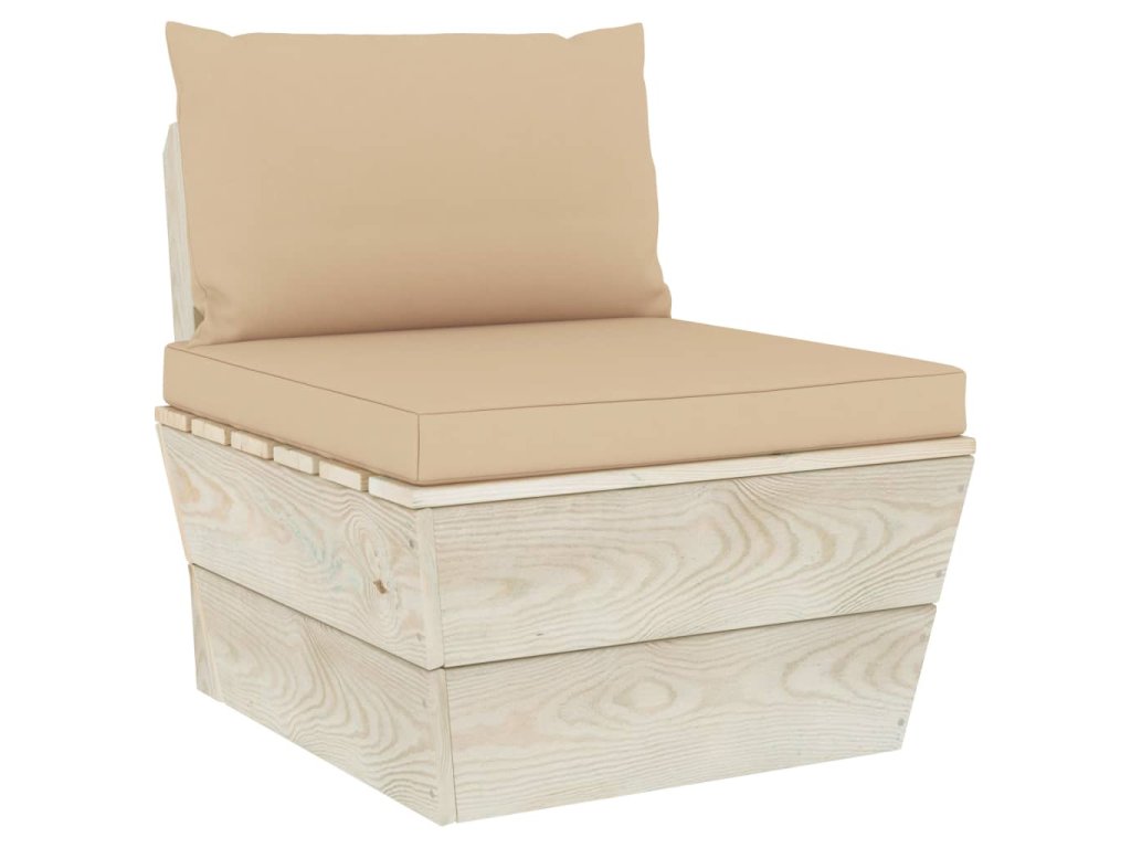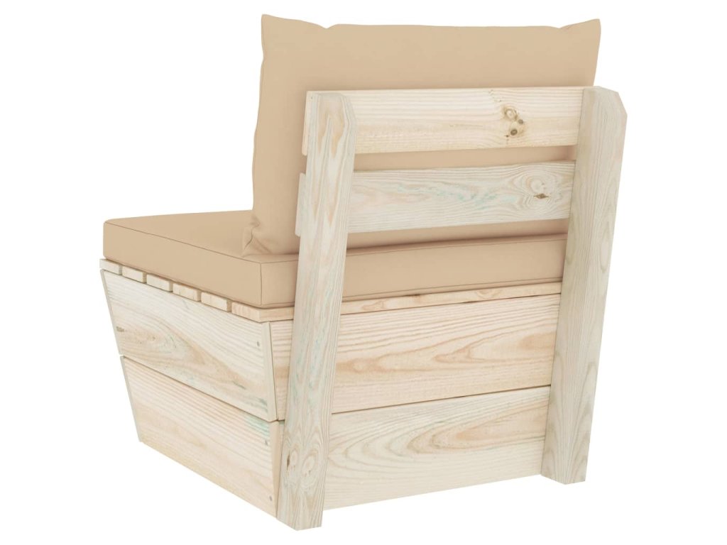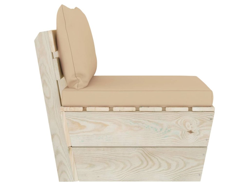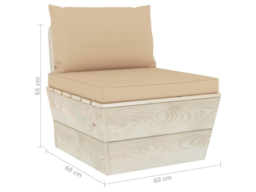 Zahradní sedačka je vyrobená z impregnovaného smrkového dřeva, takže je velice odolná a stabilní. Má pevnou konstrukci a nevyžaduje téměř žádnou údržbu. Podušky na palety jsou čalouněné 100% polyesterem a mají husté polstrování, takže je nesmírně měkká a zajistí vám maximální pohodlí. Středová pohovka vám přijde skvěle vhod, pokud se chcete s rodinou podívat na film, zahrát si video hry nebo si vychutnat pěkné počasí na dvorku. Zahradní posezení má modulární design, což znamená, že je zcela flexibilní a lze ho snadno přesouvat a přizpůsobovat různým prostředím. Můžete ho také zkombinovat s dalšími modulovými díly a vytvořit si originální zahradní sedací soupravu přesně podle vašich představ!