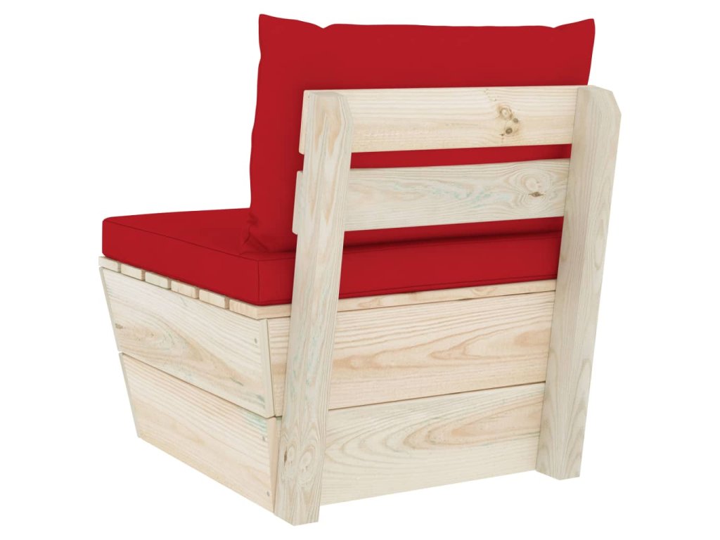Zahradní sedačka je vyrobená z impregnovaného smrkového dřeva, takže je velice odolná a stabilní. Má pevnou konstrukci a nevyžaduje téměř žádnou údržbu. Podušky na palety jsou čalouněné 100% polyesterem a mají husté polstrování, takže je nesmírně měkká a zajistí vám maximální pohodlí. Středová pohovka vám přijde skvěle vhod, pokud se chcete s rodinou podívat na film, zahrát si video hry nebo si vychutnat pěkné počasí na dvorku. Zahradní posezení má modulární design, což znamená, že je zcela flexibilní a lze ho snadno přesouvat a přizpůsobovat různým prostředím. Můžete ho také zkombinovat s dalšími modulovými díly a vytvořit si originální zahradní sedací soupravu přesně podle vašich představ!