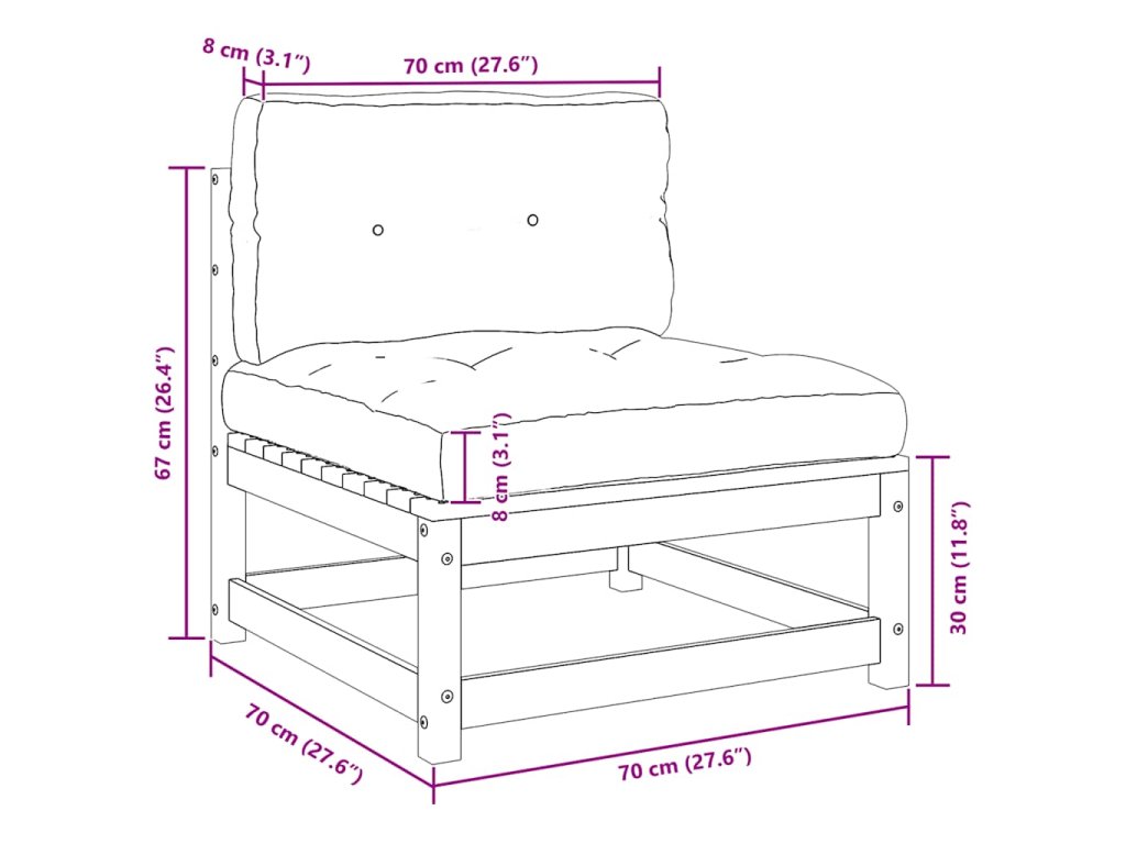 Středová pohovka je vyrobená z masivního borového dřeva, takže je bytelná a stabilní. O vaše pohodlí se postarají dodané podušky. Dřevěná středová sedačka má modulární design, je tedy zcela flexibilní a můžete ji bez námahy přesouvat tak, aby zapadla do každého prostředí.