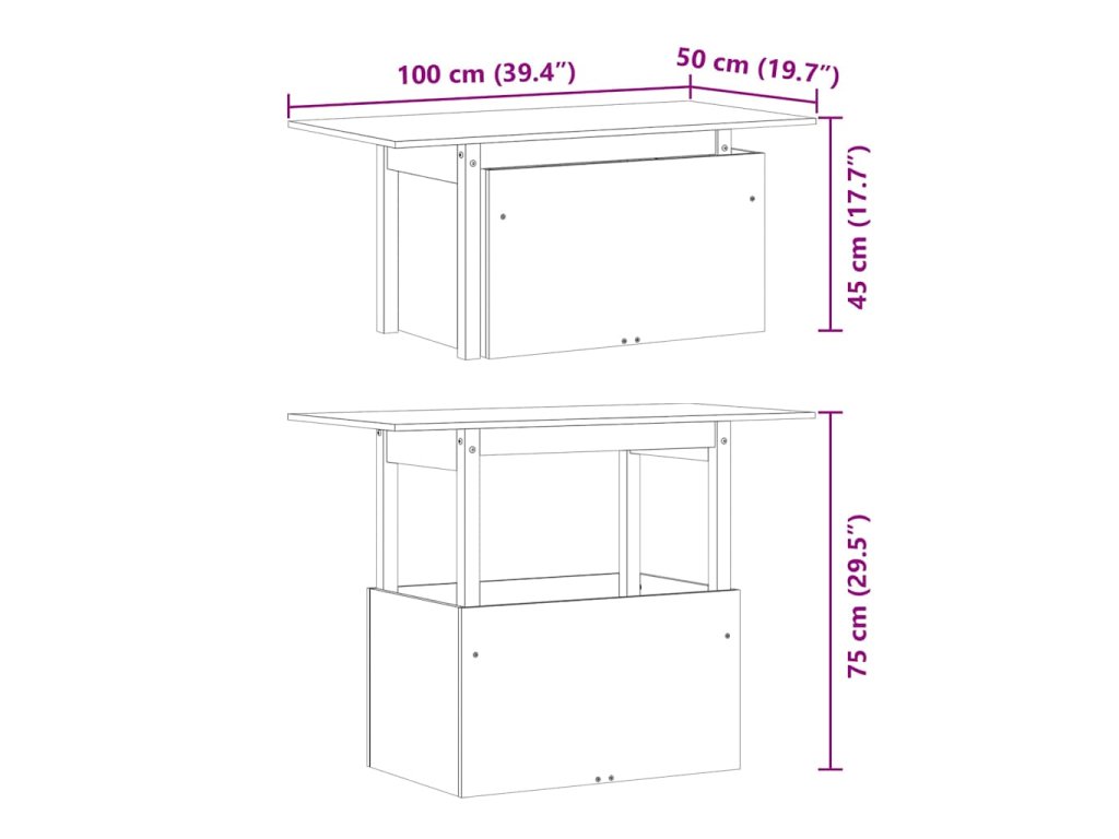 - Nastavitelná deska stolu: Stolní desku lze zvednout tak, aby stůl byl vyšší, takže jej můžete přeměnit z konferenčního stolku na jídelní. Skvěle se hodí pro návštěvy nebo pro stolování venku.