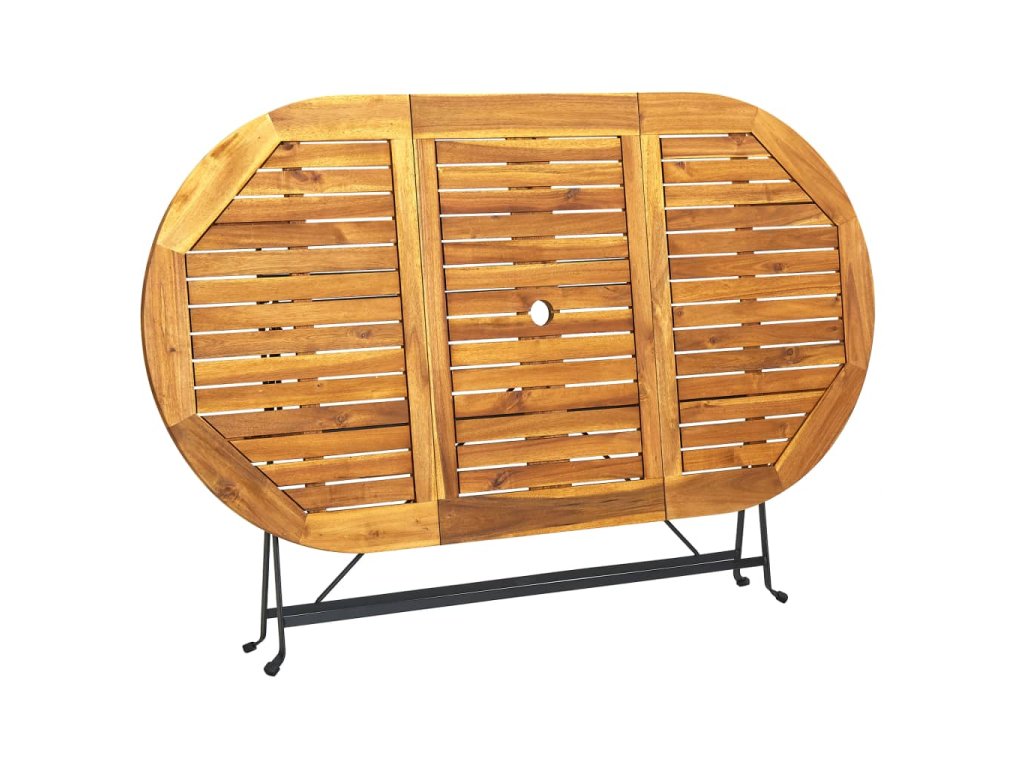 Dřevěný zahradní jídelní stůl je zhotovený z akáciového tvrdého dřeva, které se vyznačuje znamenitou voděodolností a dlouhou životností. Stůl je tudíž jako dělaný pro venkovní použití. Spolehlivý ocelový rám dodává nábytku na stabilitě a odolnosti. Stůl je navíc možné složit, když ho právě nepotřebujete a chcete ušetřit místo.