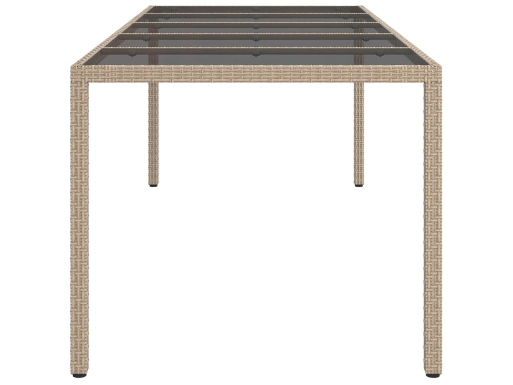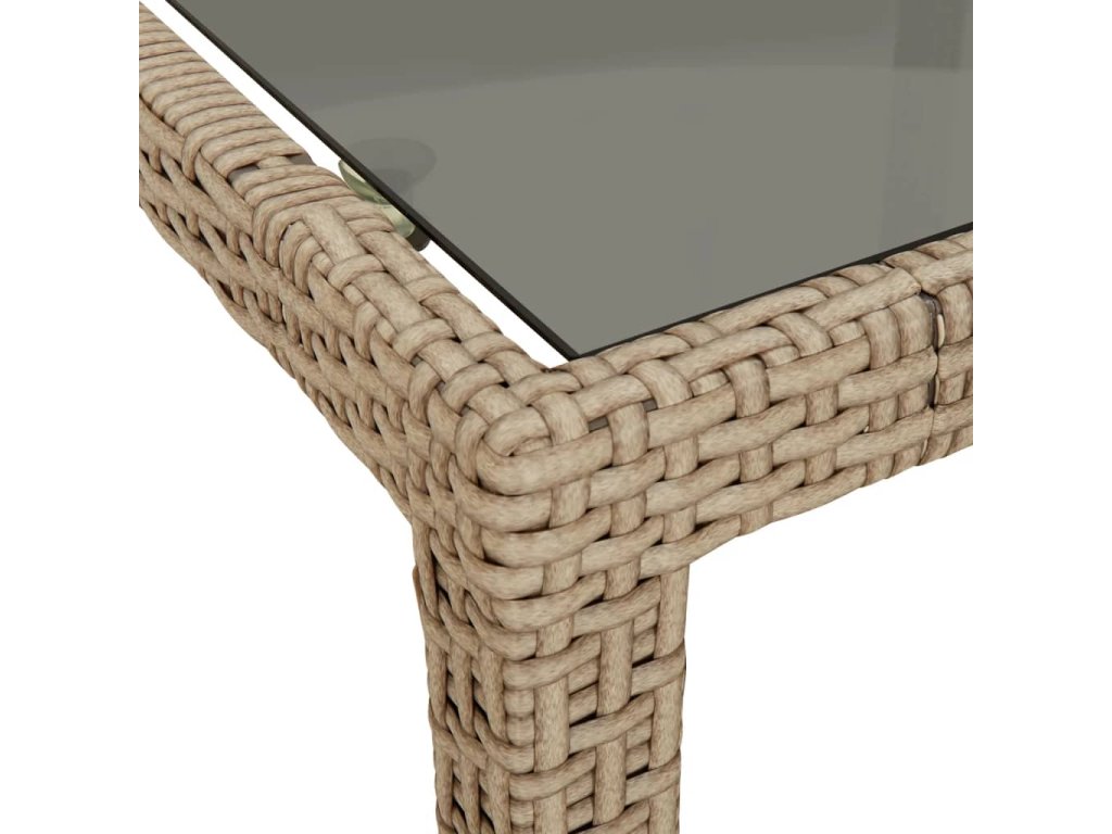 Zahradní stůl má práškově lakovaný ocelový rám opletený polyratanem, takže je robustní a stabilní. Stolní deska je navíc zhotovena z tvrzeného skla, což usnadňuje její čištění. Vzhledem k lehké konstrukci se tento zahradní stůl snadno přemisťuje.