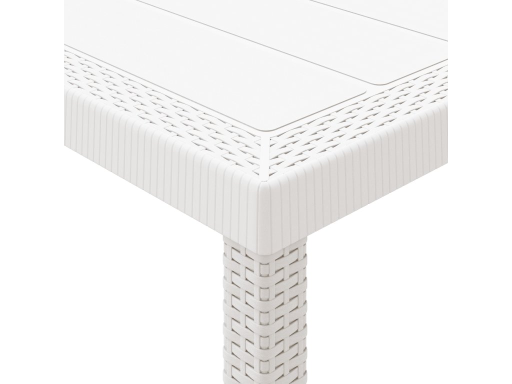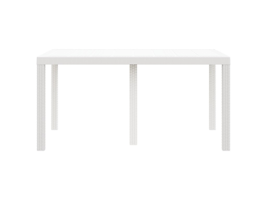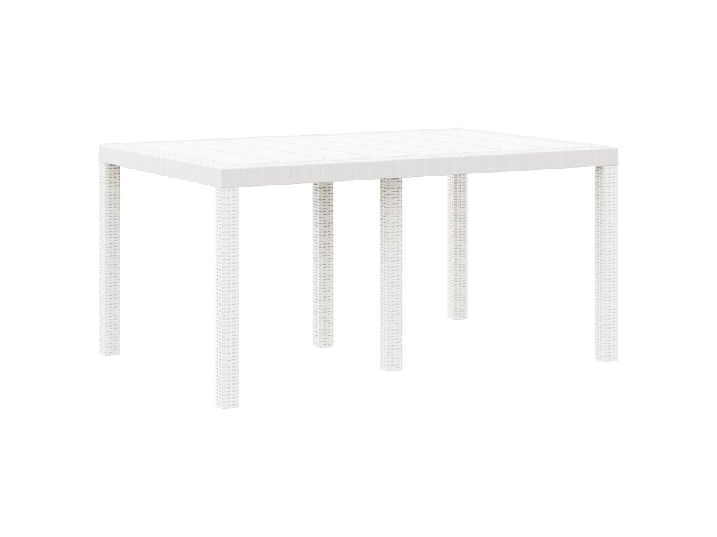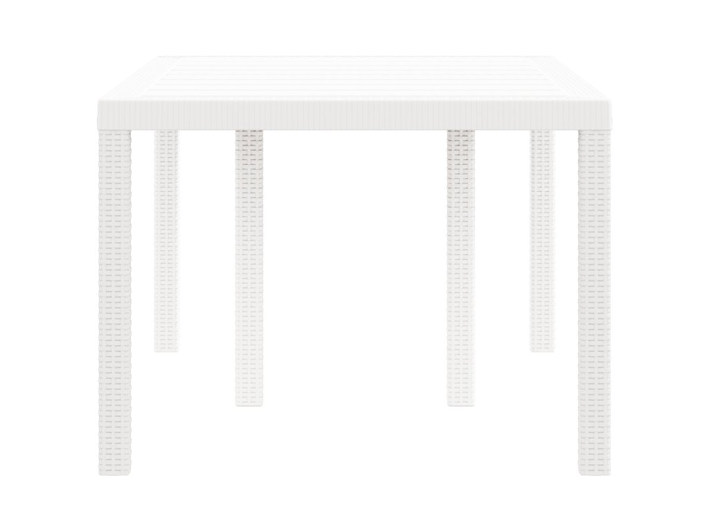 Tento stylový stůl na terasu je super univerzální a elegantní, což z něj dělá skvělou volbu pro jakékoli venkovní setkání, rodinné obědy nebo pohodové brunchování na tvém balkoně nebo v zimní zahradě. Jeho obdélníkový design a hladký bílý povrch dodávají moderní šmrnc a zajistí pohodlí pro až šest lidí během jídla nebo odpočinkových chvilek.