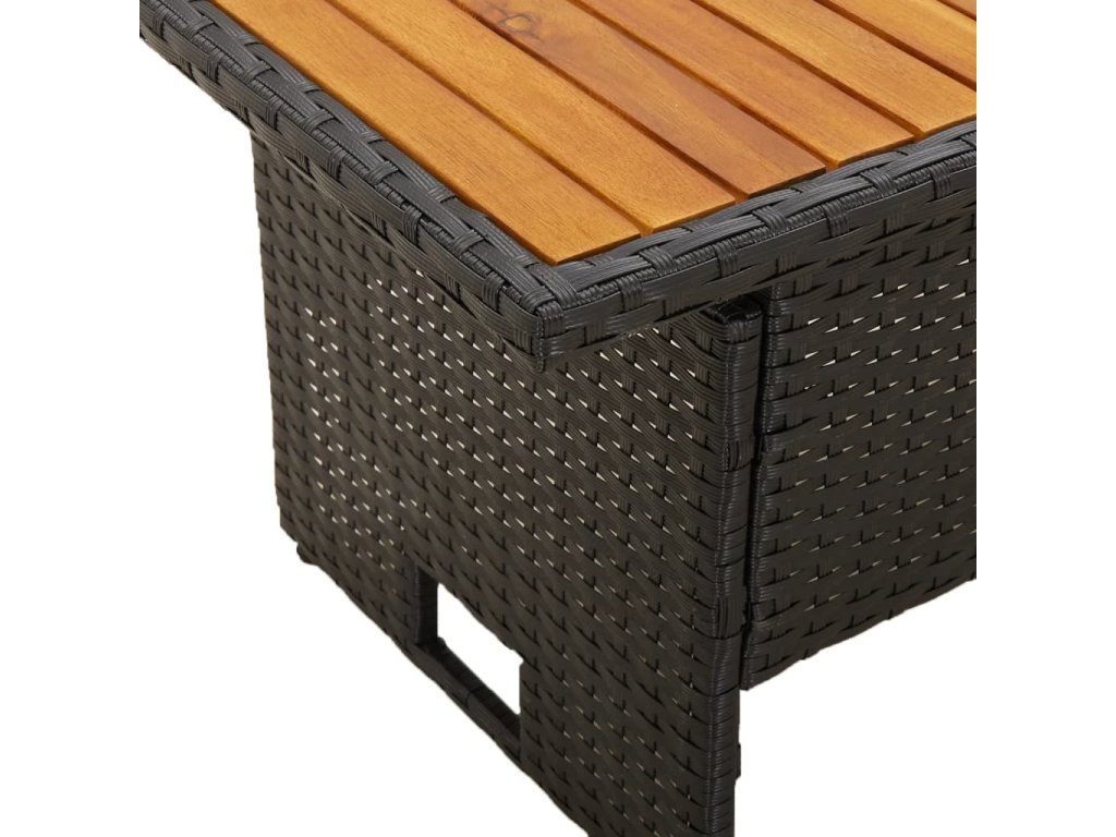 - Materiál: masivní akáciové dřevo s olejovou povrchovou úpravou, PE ratan, práškově lakovaná ocel
